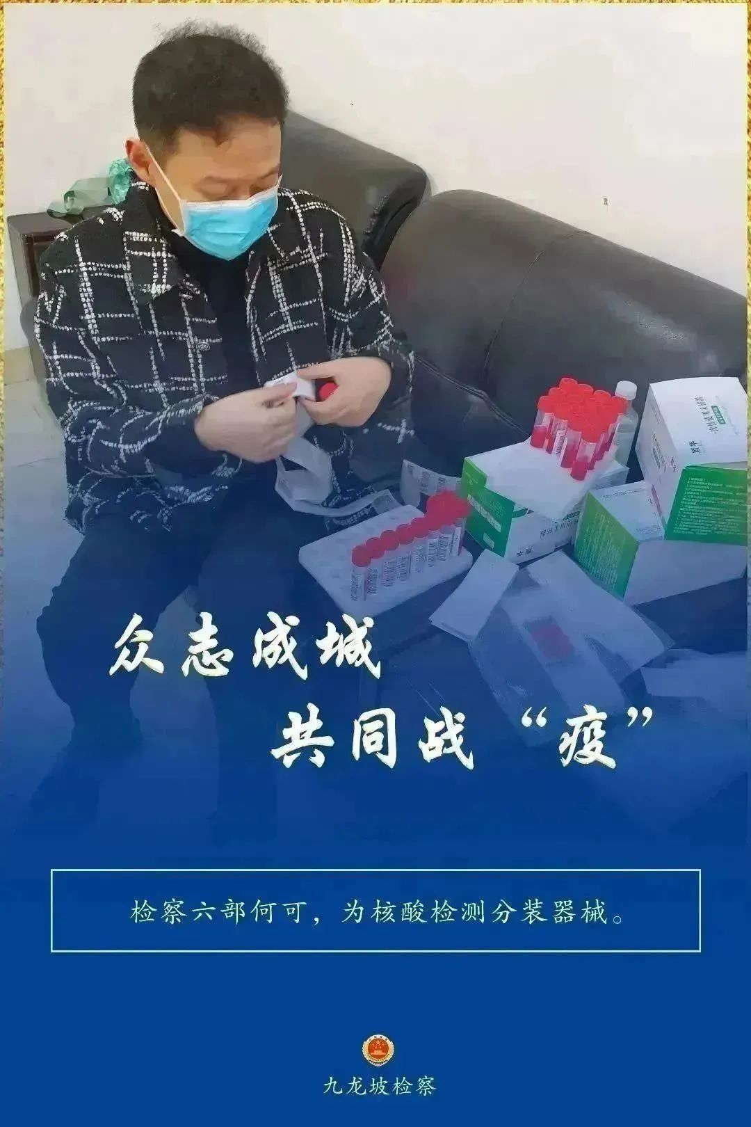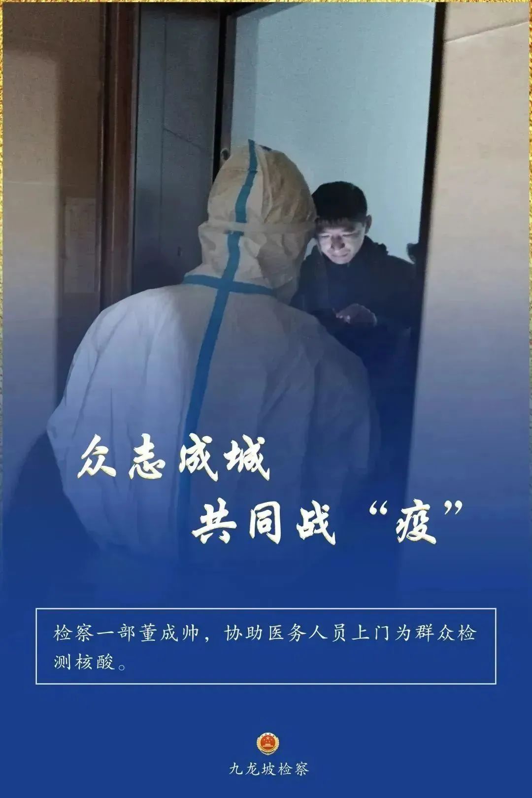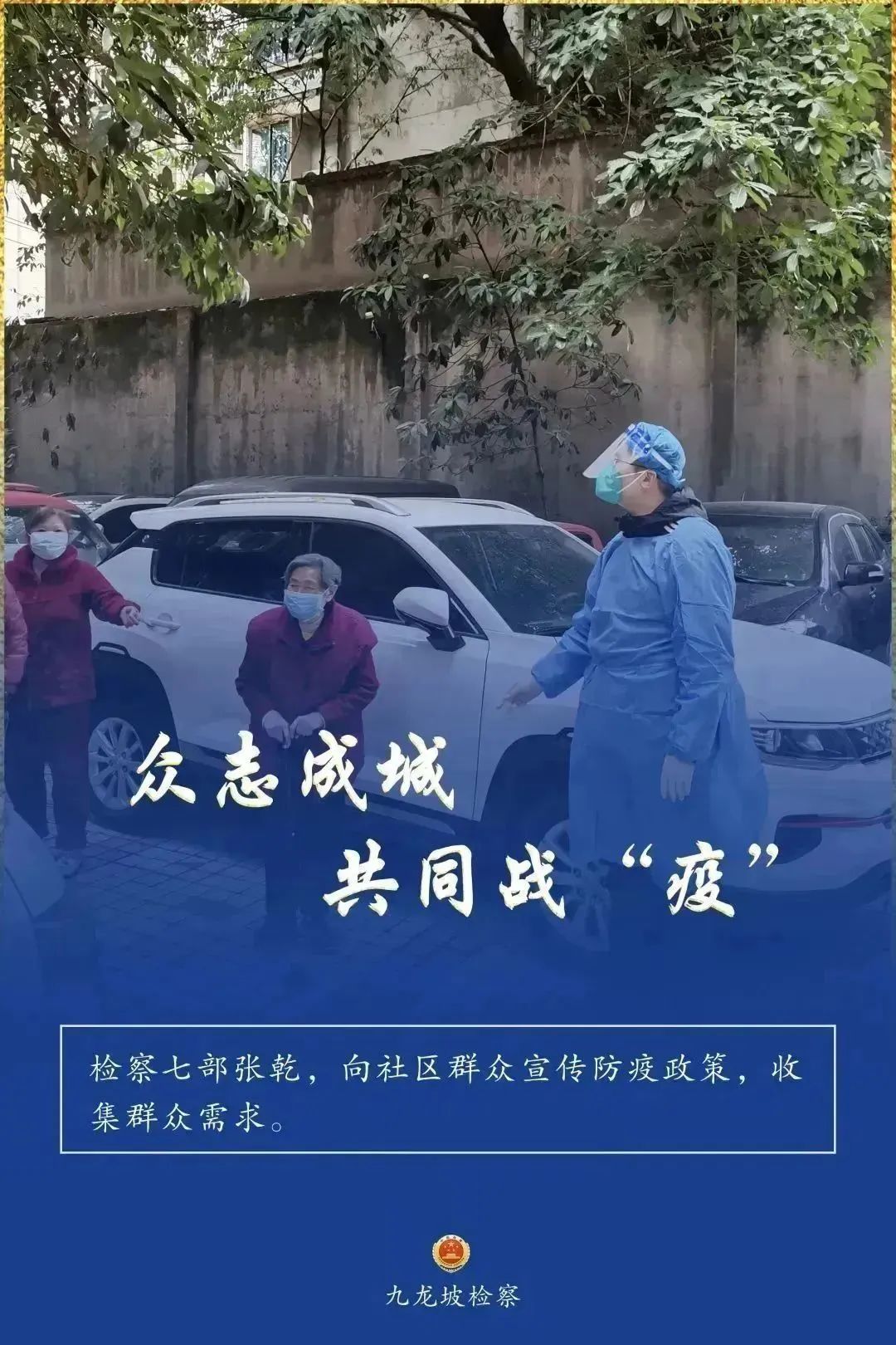 连日来,九龙坡区疫情防控形势复杂严峻。九龙坡区检察院疫情防控志愿者们,他们始终坚守一线、不畏险阻,他们的身影活跃在疫情防控的各个环节,与街道、社区工作者们并肩奋战、共同战“疫”,为全区疫情防控工作增添一抹“检察蓝”,用实际行动诠释着检察人的使命担当。