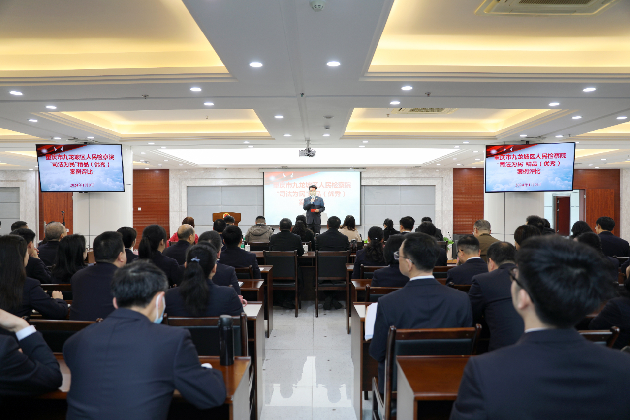 1月9日,九龙坡区检察院举办“司法为民”精品(优秀)案例评比。区委常委、政法委书记陈品明,区政协副主席程涛,市院检察九部主任廖伟等出席活动。邀请到市人大代表张涛,区人大代表傅涵,区政协委员张颖坤,人民监督员辛晓勤、芶浚豪,西南政法大学副教授姚万勤、冯文杰担任评委。此外,该院党组书记、代理检察长刘伟及班子成员和全院干警现场观看并参与投票。
