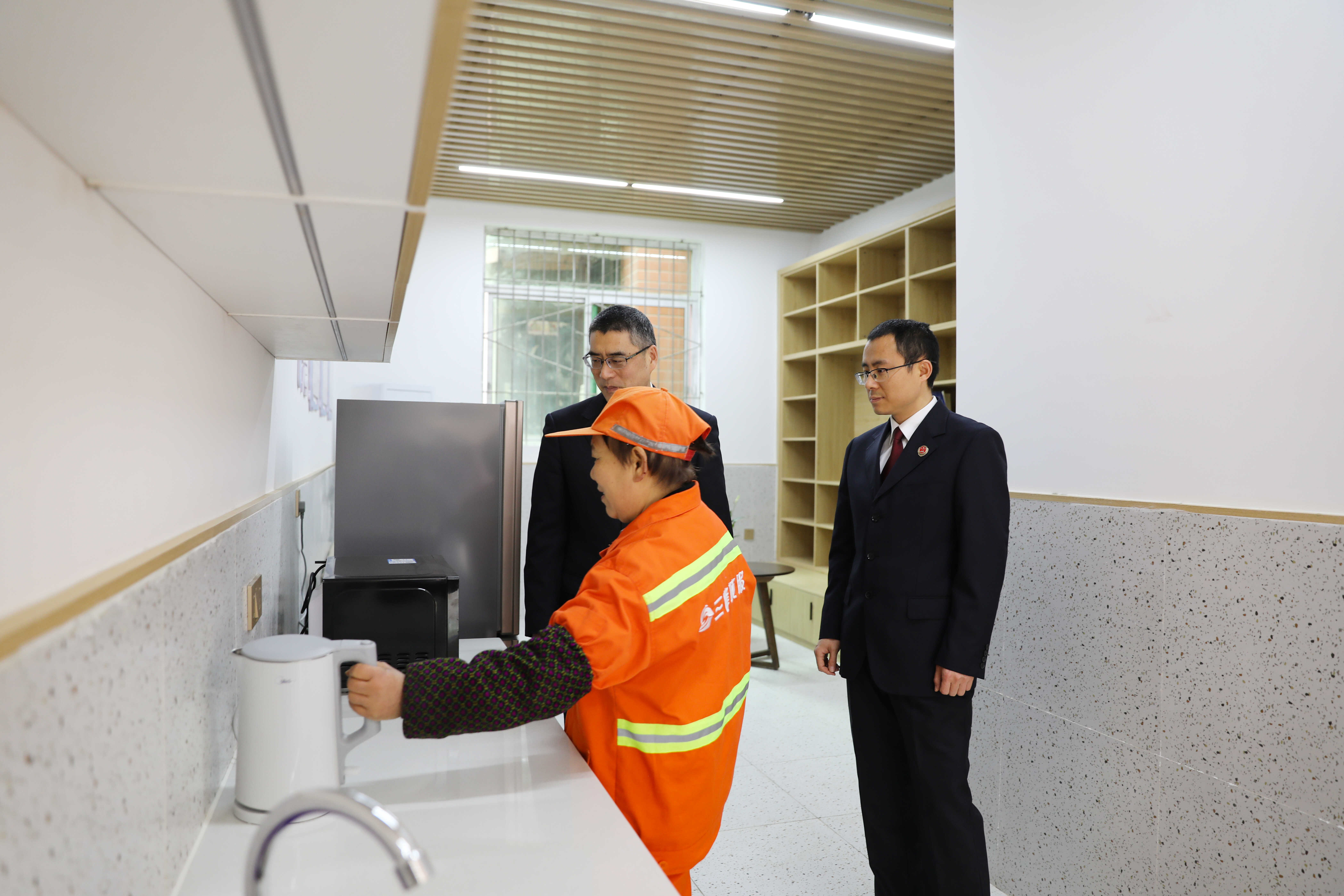 “现在做完清洁,渴了能在这里喝一杯热水,累了还能歇一会儿,很方便也很贴心。”2024年3月19日,九龙坡区检察院公益诉讼检察官在西彭镇铝城南路开展公益诉讼“回头看”时,刚刚打扫完清洁,正在“劳动者港湾”里休息的环卫工人梁大娘高兴的向检察官介绍道。
