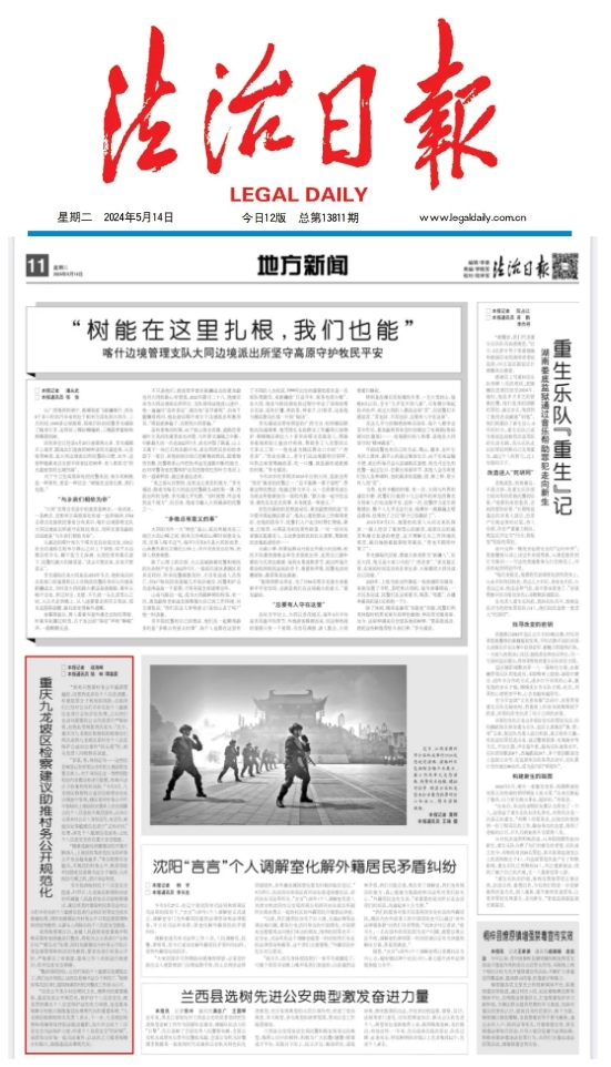 2024年5月14日,《法治日报》第11版刊登《重庆九龙坡区检察建议助推村务公开规范化》一文,内容如下:
