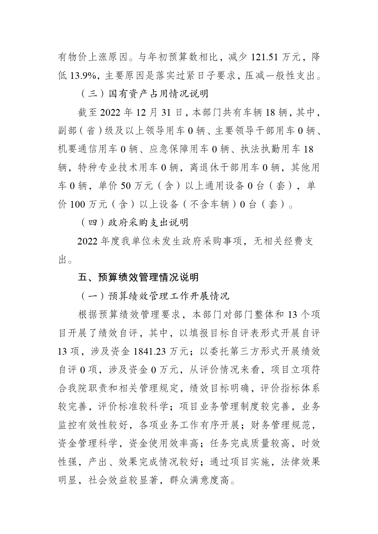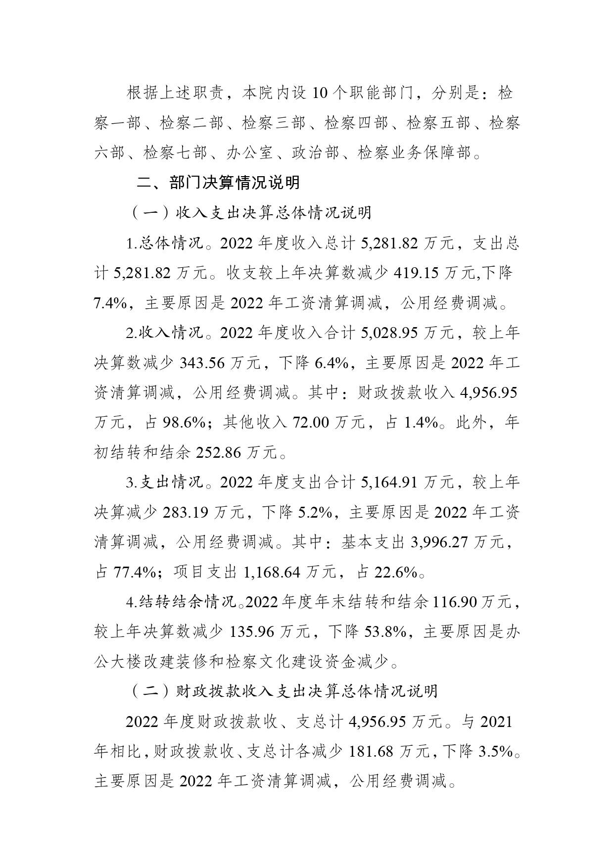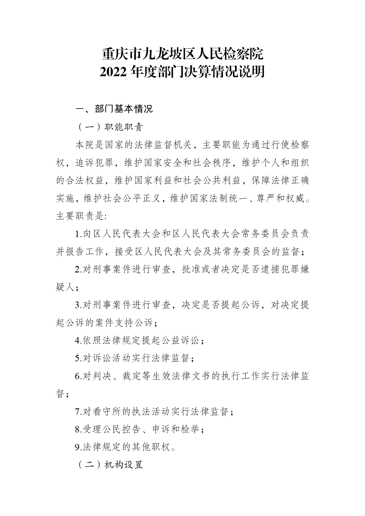 重庆市九龙坡区人民检察院2022年度部门决算情况说明