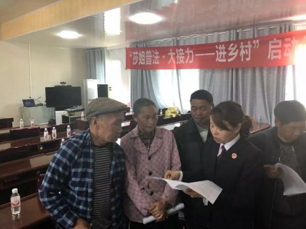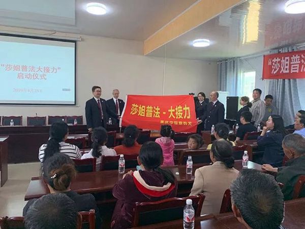 三分院、武隆区检察院的检察官们,为文凤村的村干部和村民们带来了一堂法治课,专门讲授农民工如何维护自身合法权益。与此同时,这也是“莎姐普法•大接力”活动的启动仪式现场。