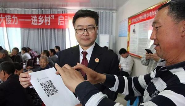 检察官谭山为村民展示入群二维码