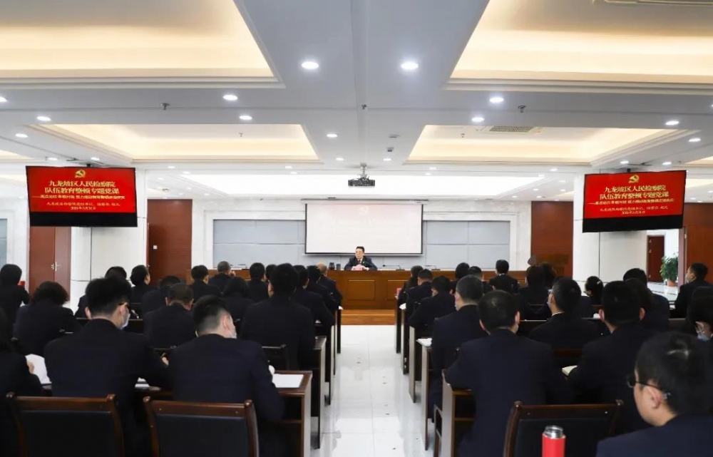 3月31日,九龙坡区检察院党组书记、检察长赵凡结合习近平总书记对政法工作和政法队伍的重要指示精神,就教育整顿的重大意义、相关要求、实现路径等以“高点站位,寻根问效,努力推动教育整顿走深走实”为题,给全院干警上了一堂生动深刻的党课。