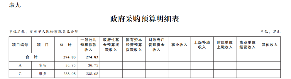 (二)政府采购情况。本单位政府采购预算总额274.83万元:政府采购货物预算36.75万元、政府采购工程预算0万元、政府采购服务预算238.08万元;其中一般公共预算拨款政府采购274.83万元:政府采购货物预算36.75万元、政府采购工程预算0万元、政府采购服务预算238.08万元。