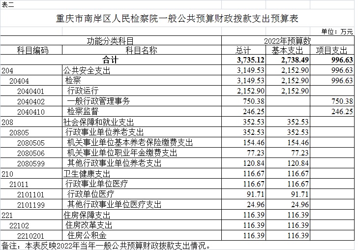 重庆市南岸区人民检察院2022年部门预算情况说明