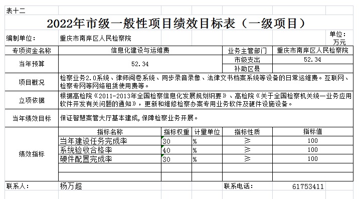 部门预算公开联系人:杨万超 联系方式:023-61753411