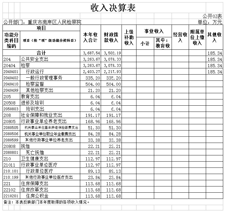1.总体情况。2020 年度收入总计3,838.51万元,支出总计3,838.51万元。收支较上年决算数减少424.35万元、 下降9.95%,主要原因是监察改革人员工资划转等。本部分的收入总计包括收入合计、年初结转和结余,支出总计包括本年支出合计、结余分配、年末结转和结余。