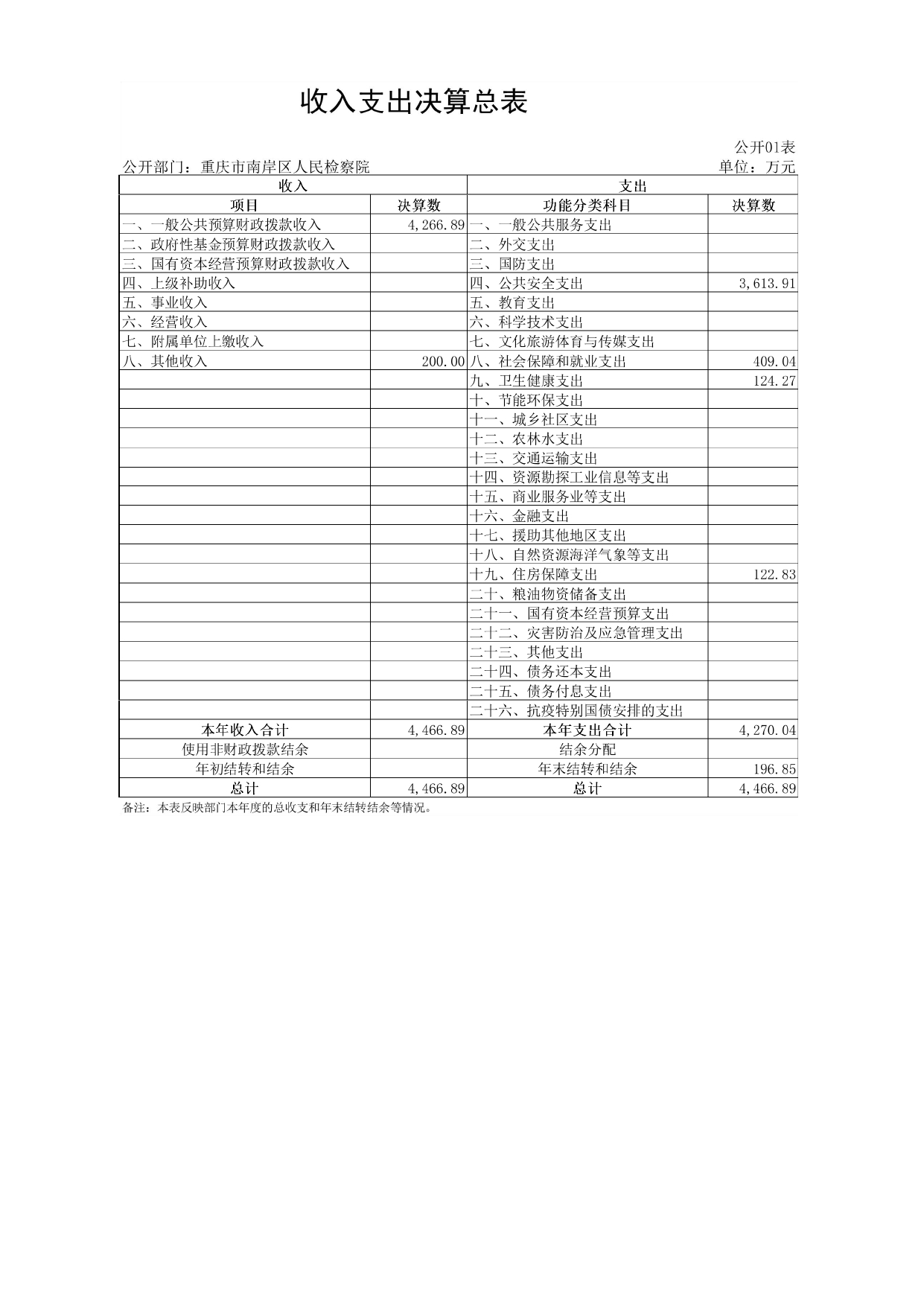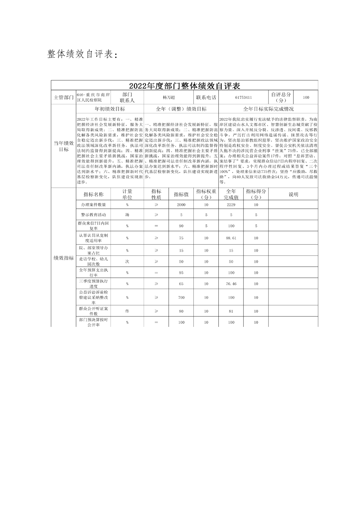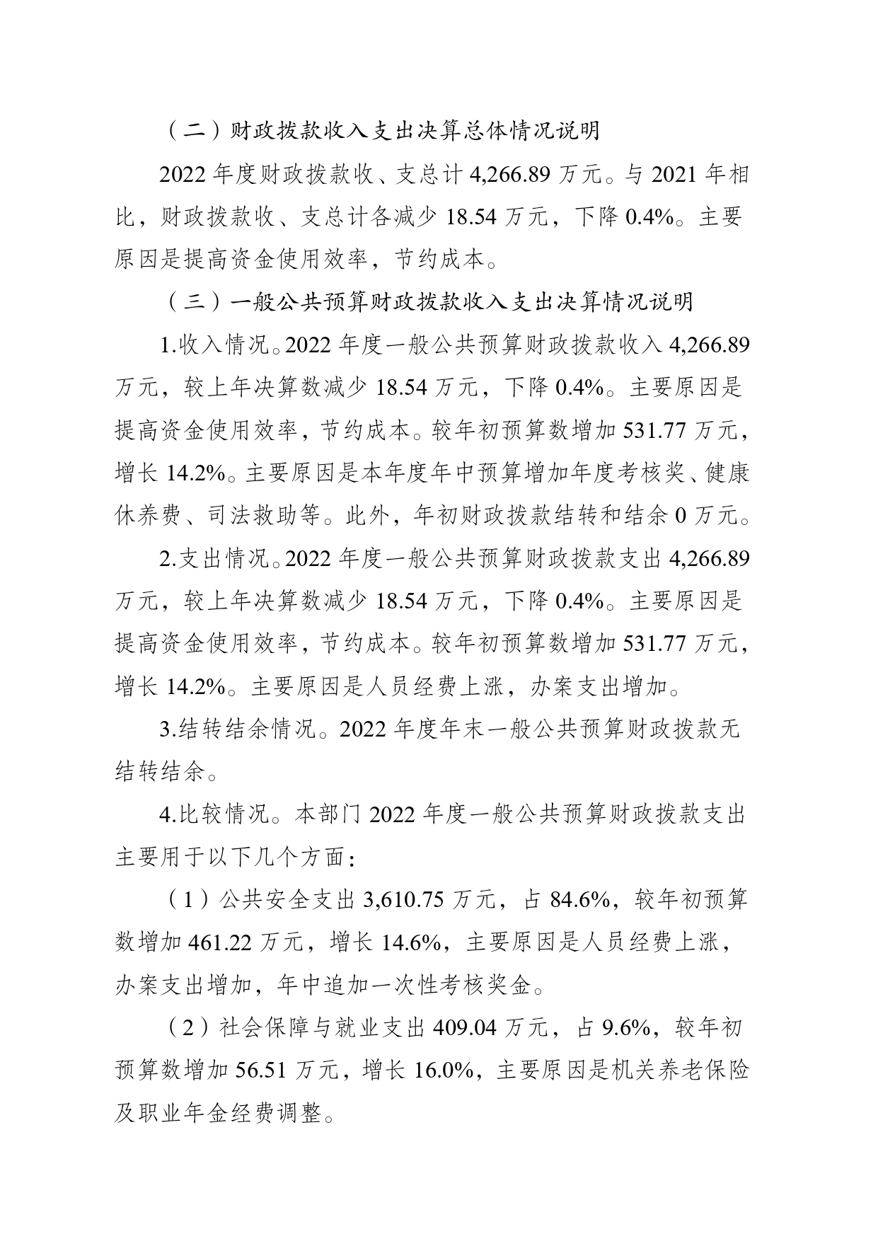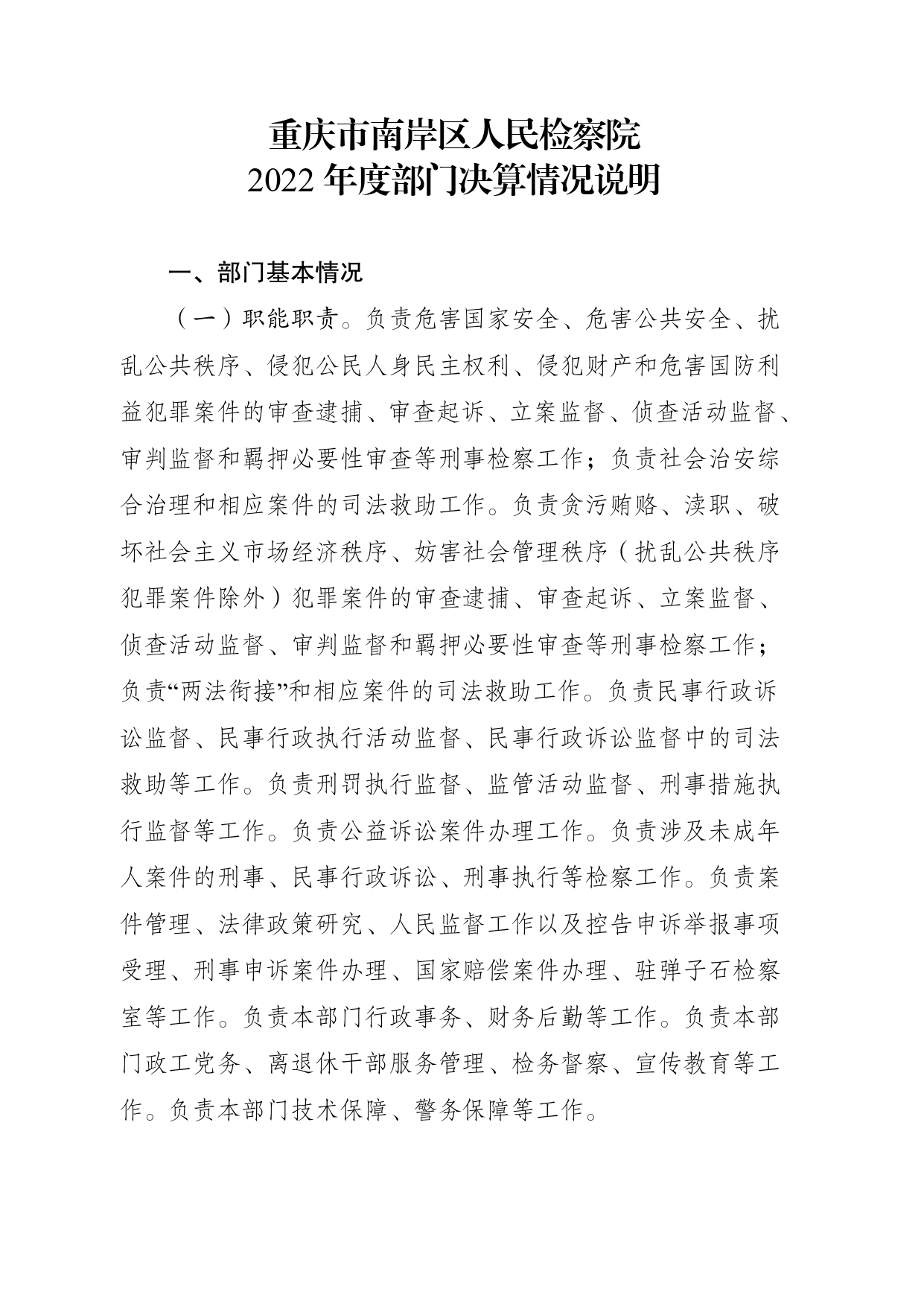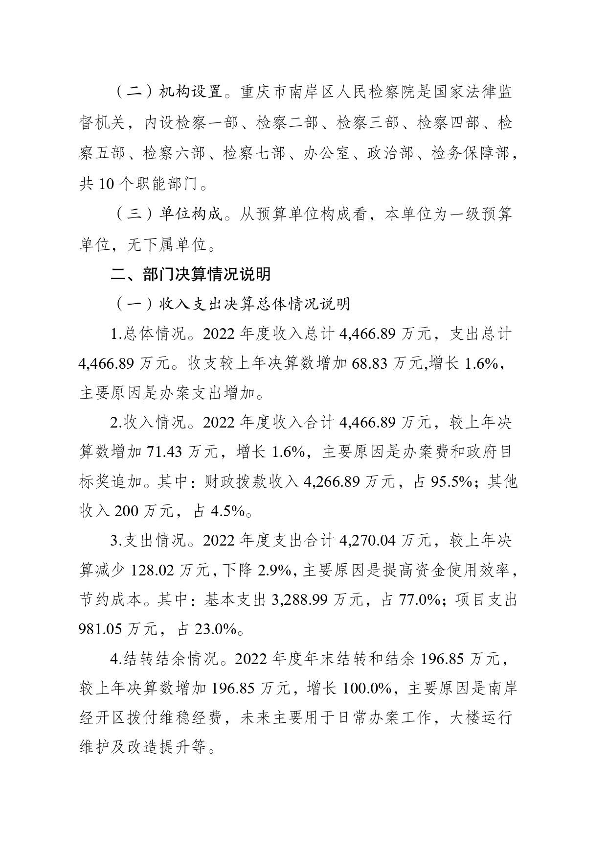 重庆市南岸区人民检察院2022年度部门决算情况说明