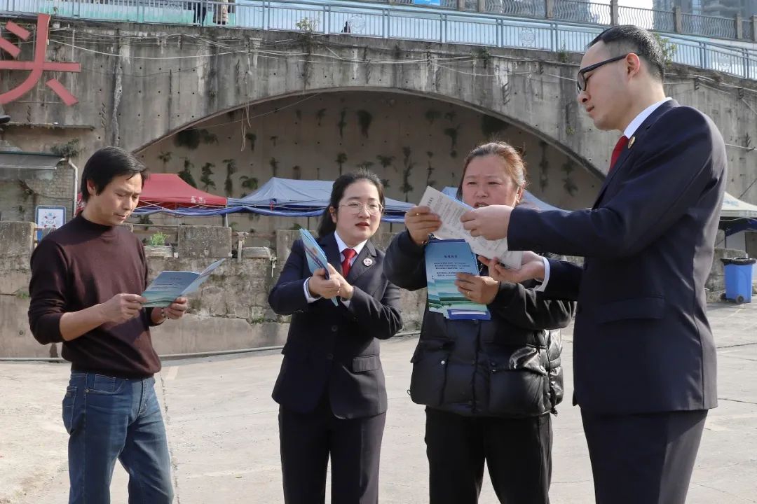 2月25日,五分院、南岸区检察院的长江生态检察官与志愿者“河小青”来到该区弹子石轮渡码头,一边拾捡沿江垃圾,一边发放普法手册,帮助市民筑牢保护长江生态意识,营造共护共保母亲河的社会氛围。