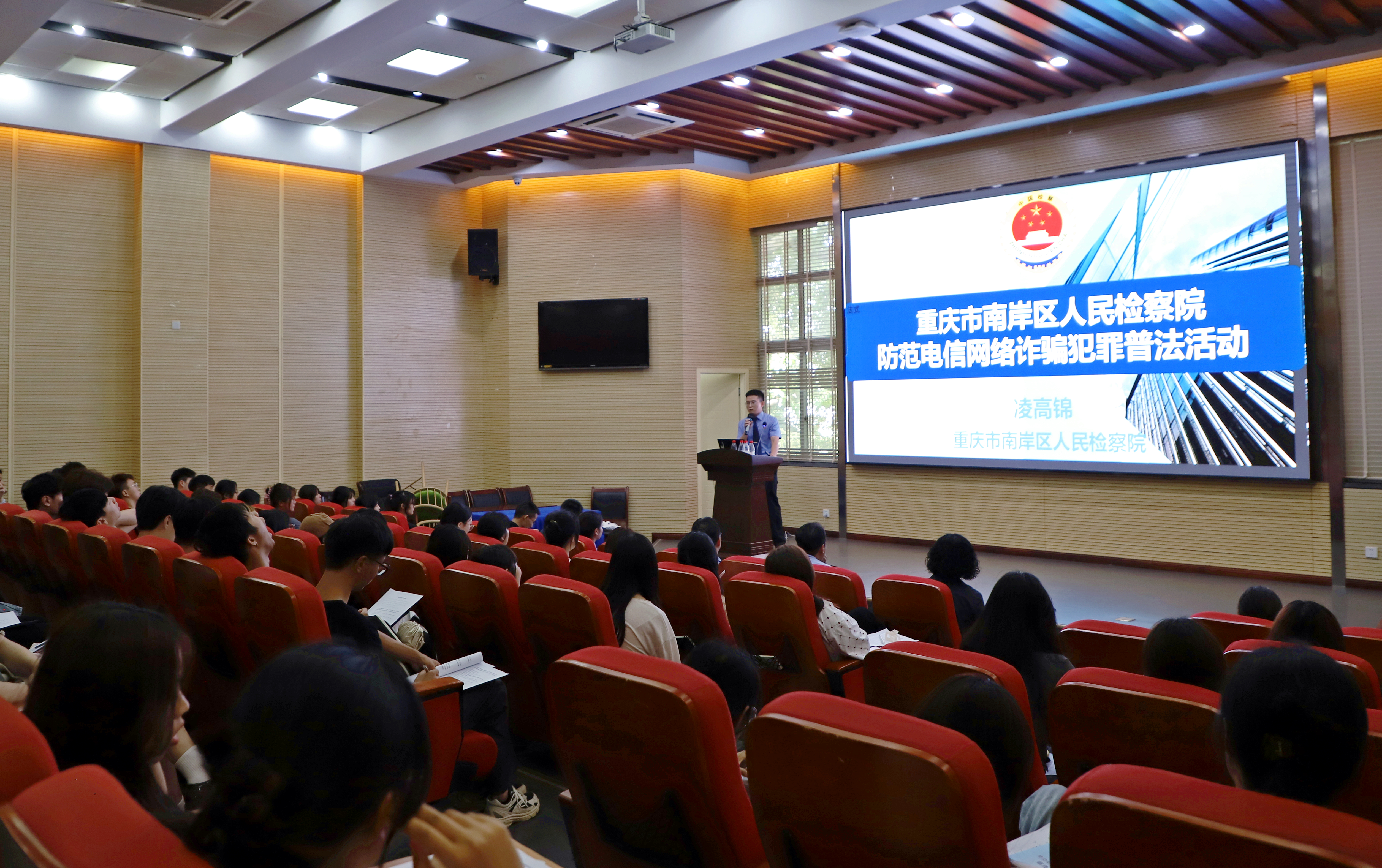 金秋九月,恰逢开学季。9月15日,南岸区检察院联合南岸区公安分局在重庆工商大学兰花湖校区开展了网络安全宣传周主题活动,本次活动以“反诈小考+现场授课+问答互动”相结合的方式,结合反诈热点寓教于乐,给200名大一新生上了生动有趣的“开学法治第一课”。