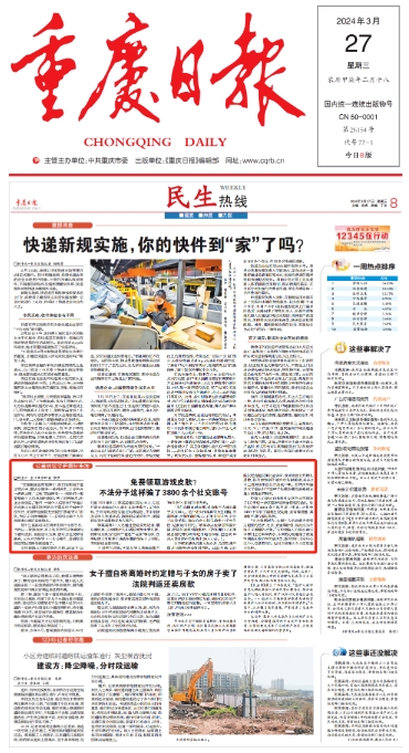 2024年3月27日,《重庆日报》第8版“公益诉讼守护美好生活”专栏刊登《免费领取游戏皮肤?不法分子这样骗了3800余个社交账号》一文,内容如下: