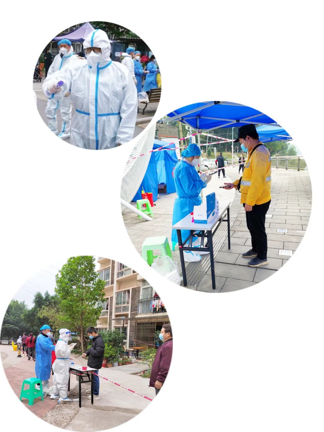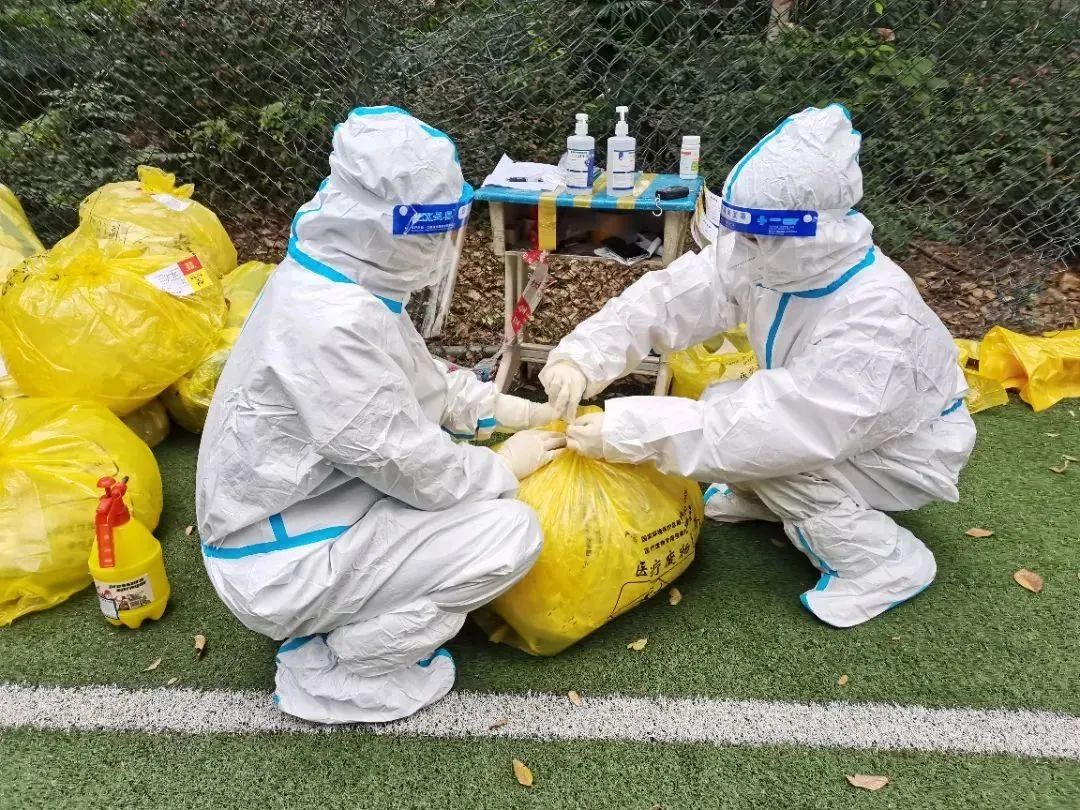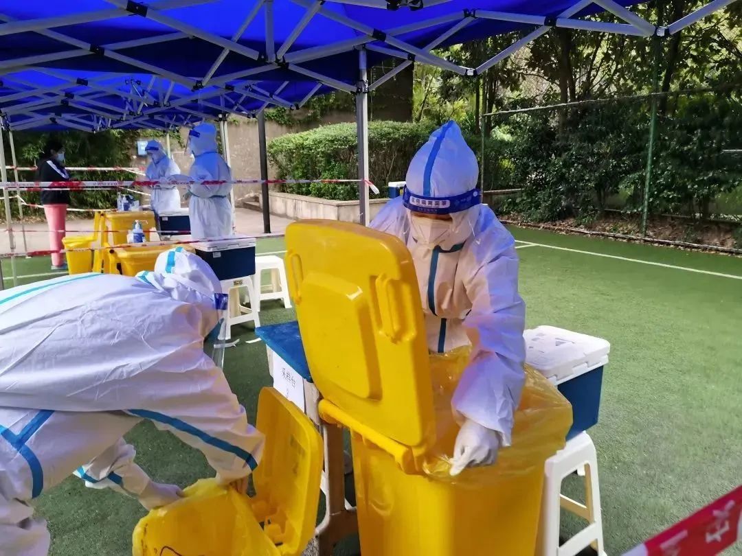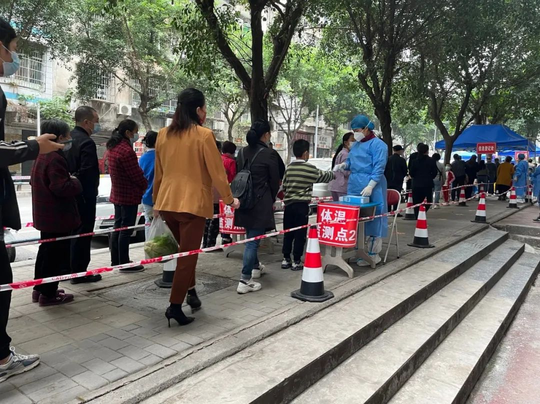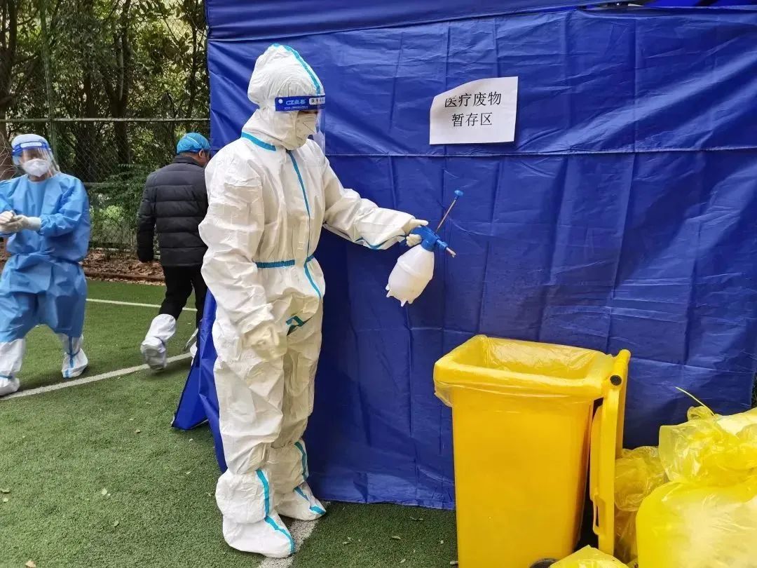 消杀现场,他们谨慎务实地展开消杀工作,对核酸采集点、大规模人员流动点、社区公共场所等重点区域进行全方位、无缝隙的防疫消毒作业,切实筑好公共防疫墙,为綦江民众营造安全健康的社区环境。