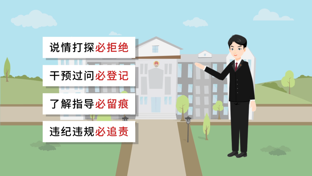 干预、过问必登记:领导干部、内部人员干预司法、插手案件一律履行报告制度并按规定逐一登记、全面记录。
