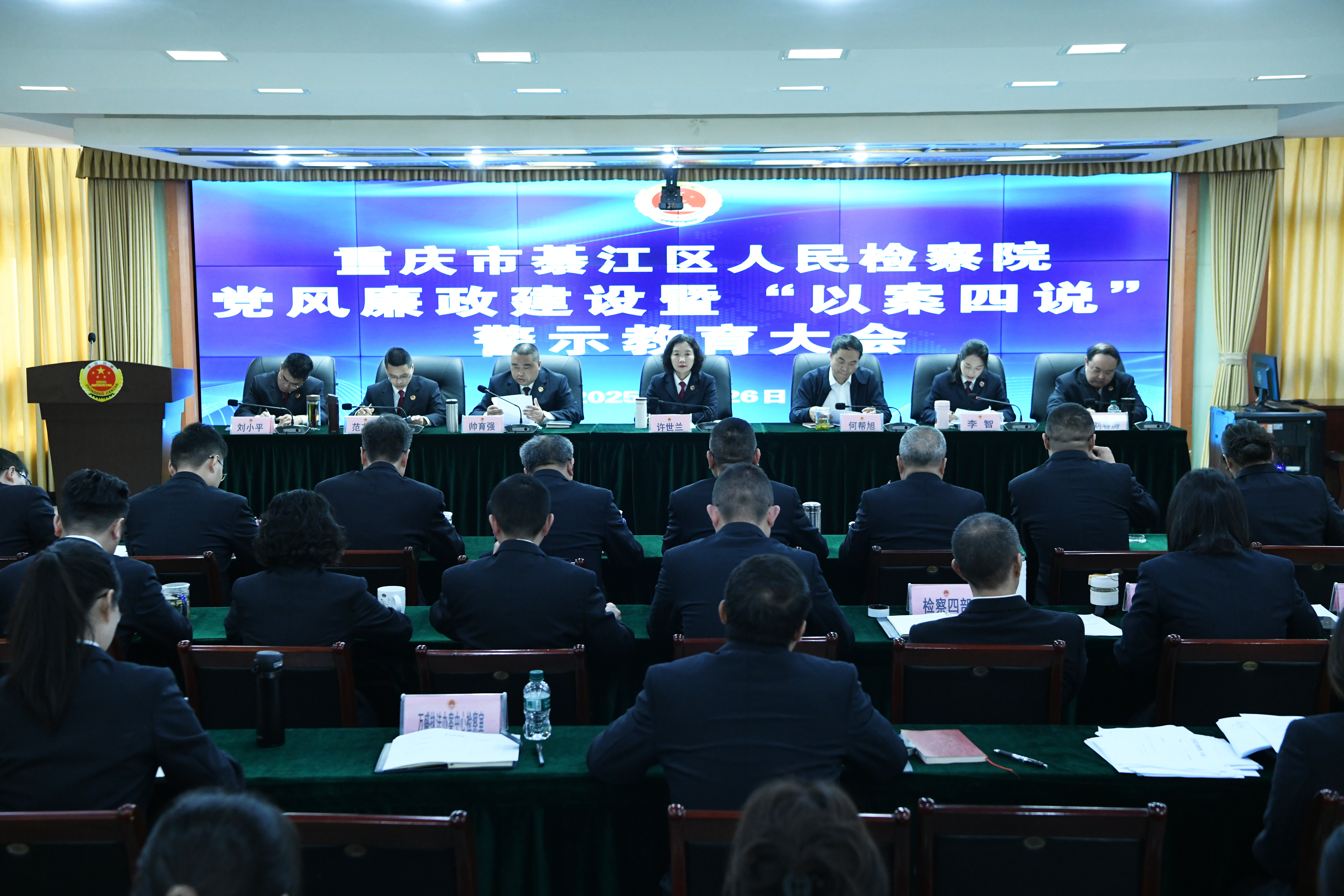 3月26日,我院召开2025年度党风廉政建设暨“以案四说”警示教育大会,全体院领导、驻人大机关纪检监察组组长、全体干警及聘用制书记员参加。