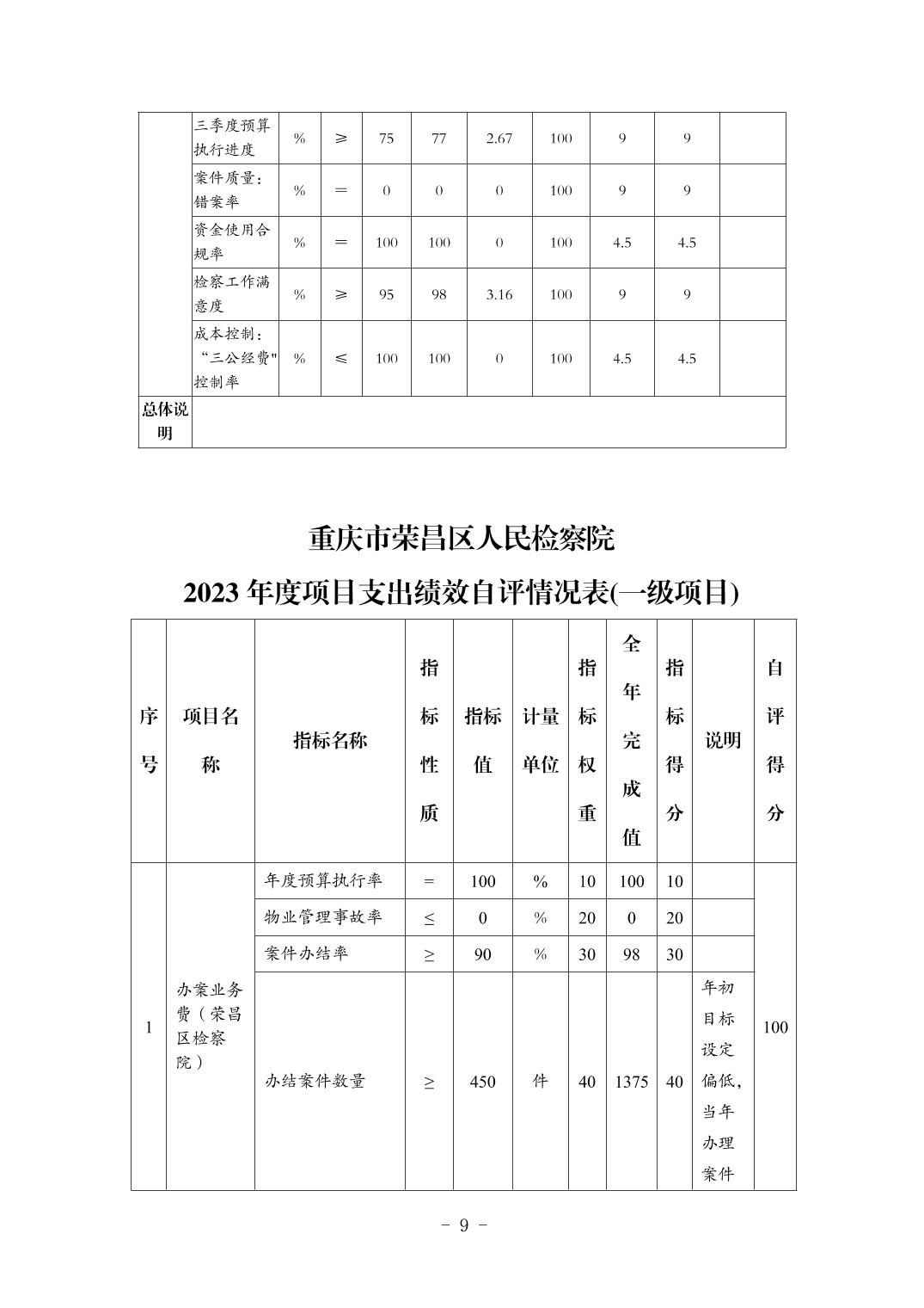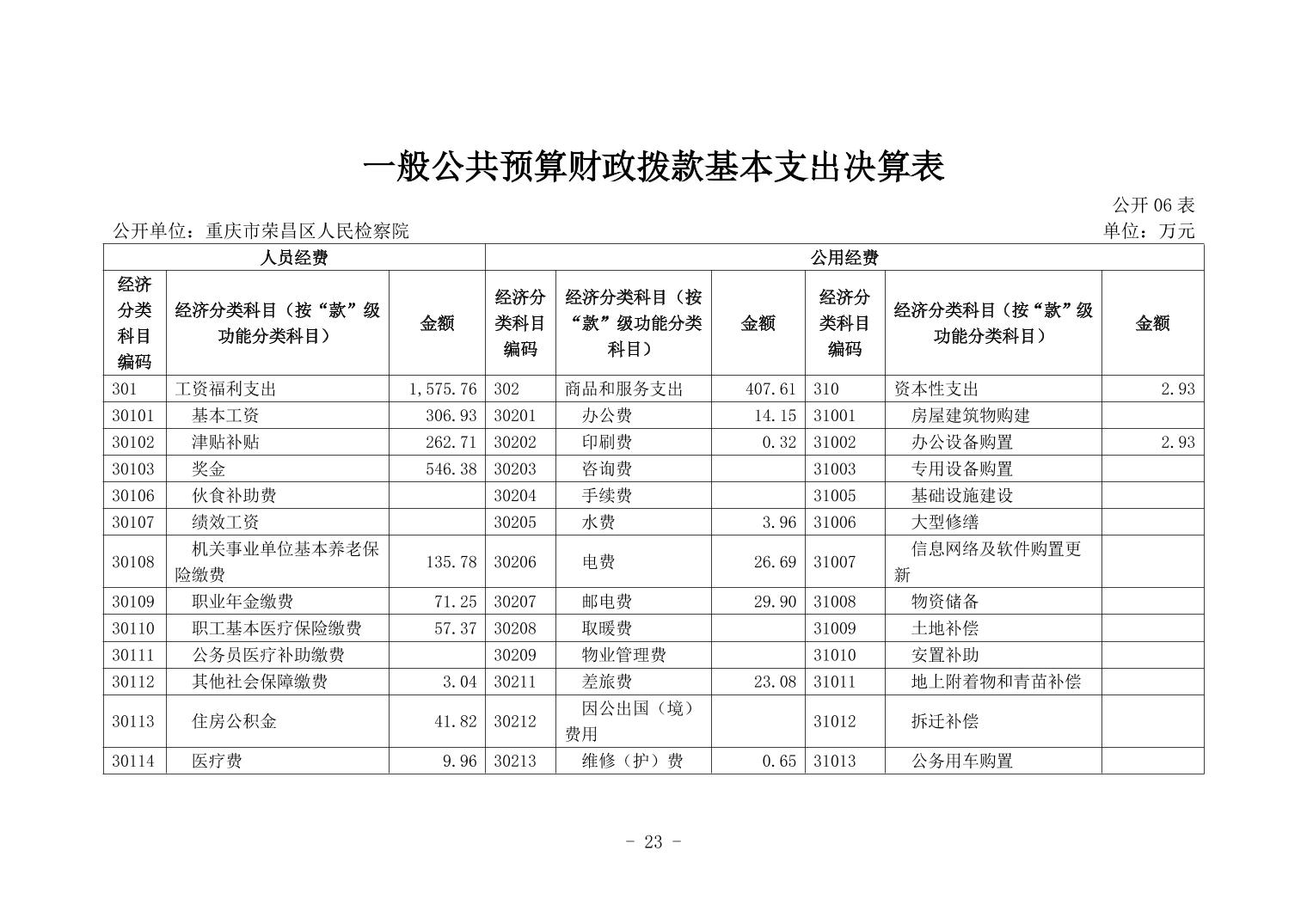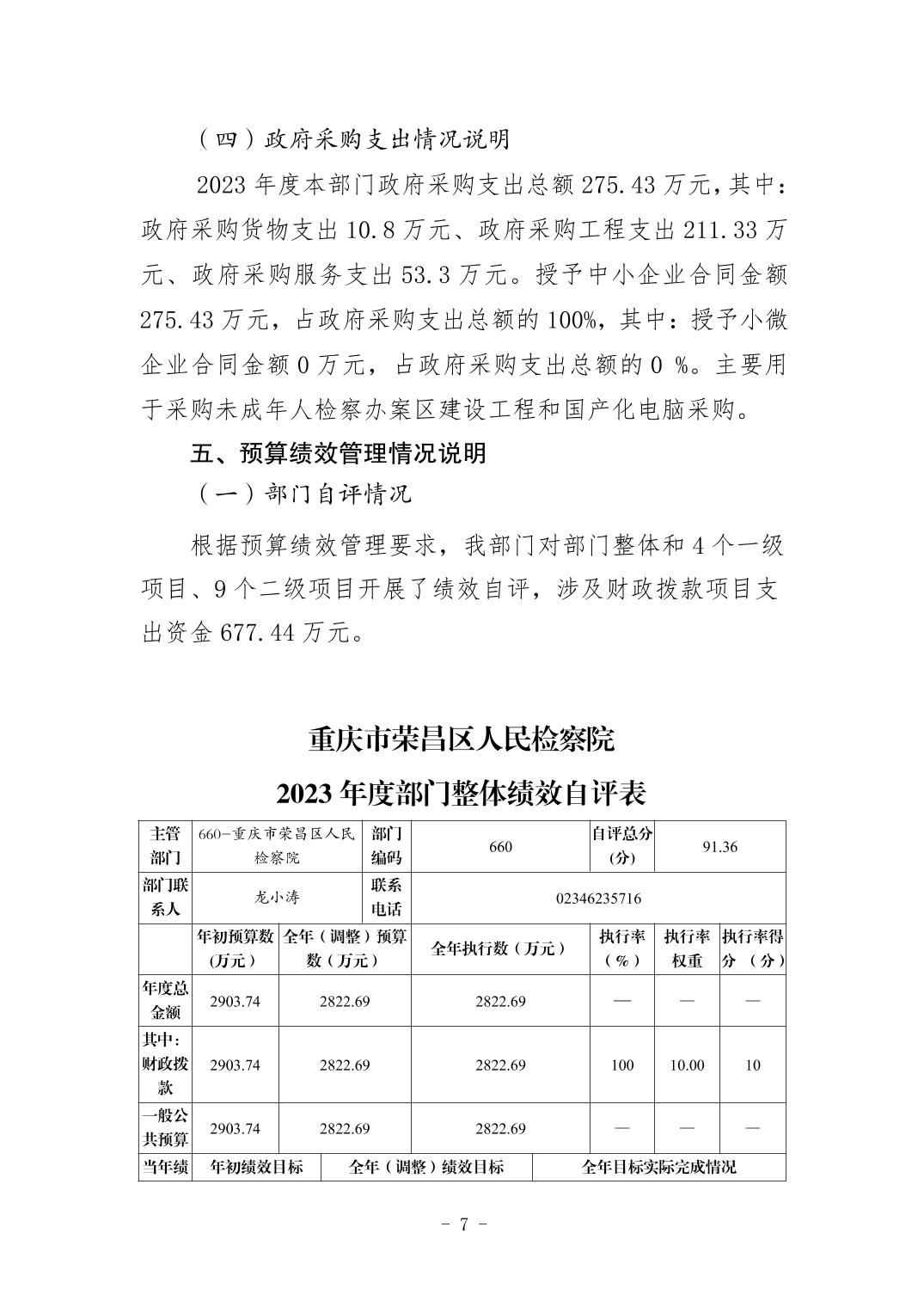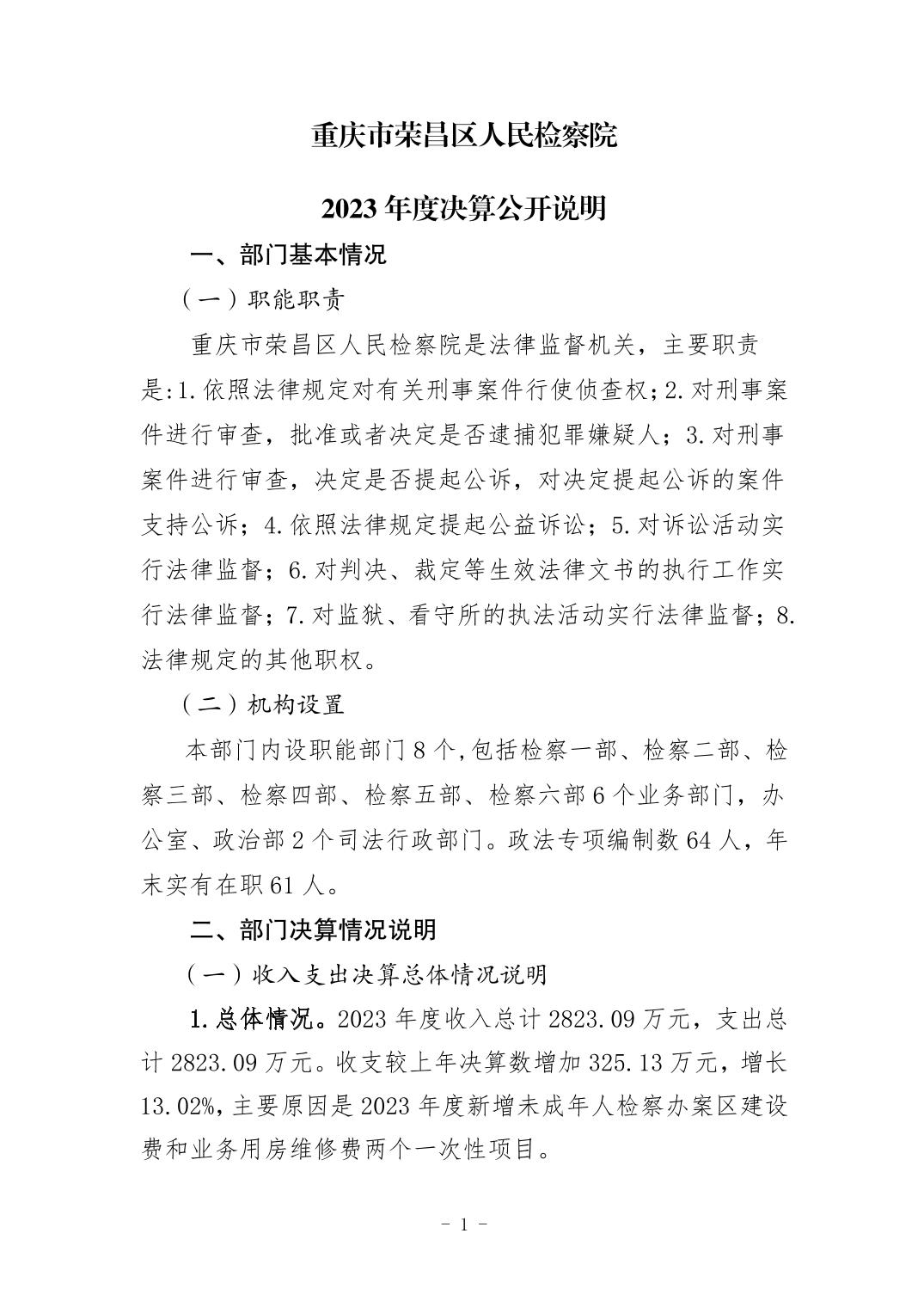重庆市荣昌区人民检察院2023 年度决算公开说明