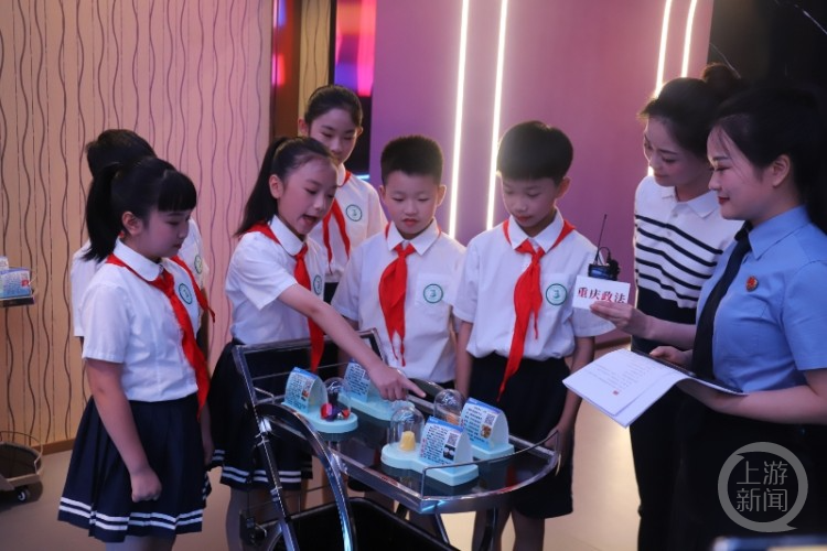 “体验区里,结合办理的真实案例,创设了一个虚拟人物‘小明’,从他上学到逃学,走向社会,进出网吧、KTV,交上不良朋友,染上毒品,走向犯罪……”体验中心里,荣昌区检察院的检察官讲解称,整个体验区设置有九个版块,第一个场景是孩子们最熟悉的学校,后面根据剧情需要搭建了KTV、网吧、宾馆、烧烤店、公安局、检察院、法院、监狱等,通过场景的无缝串联,让参观者真实体验主人公“小明”从开始出现学校逃课、进入娱乐场所、抽烟喝酒等不良习惯,一步步发展到出现吸毒、结伙滋事等严重不良行为,最后走向犯罪道路、接受法律审判,直至被送进监狱后悔不当初的过程。