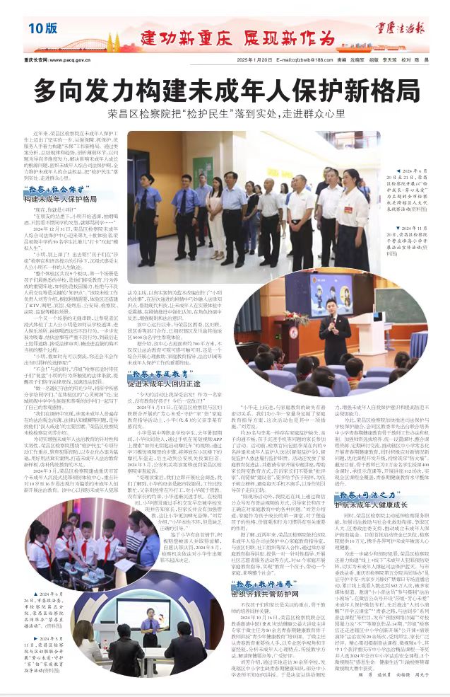 近年来,荣昌区检察院在未成年人保护工作上迈出了坚实的一步,从强保障、抓保护、优服务入手着力构建“未保”工作新格局。通过类案分析,总结规律和趋势,剖析薄弱环节,以问题为导向多维度发力,解决影响未成年人成长的根源问题,密织未成年人综合司法保护网,全力维护未成年人的合法权益,把“检护民生”落到实处、走进群众心里。