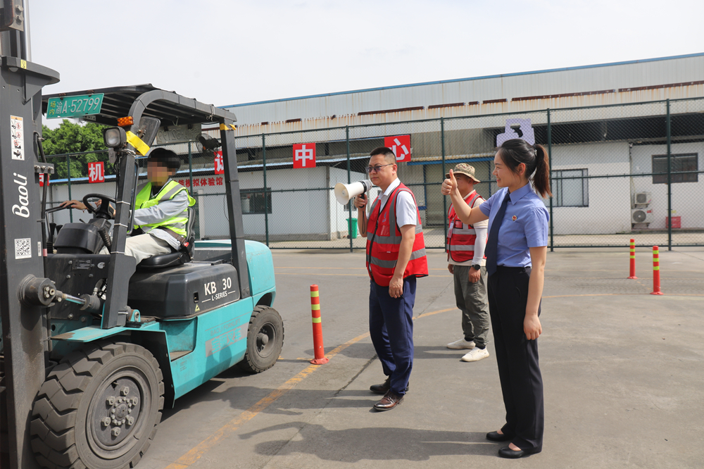 近日,在重庆市荣昌区检察院未成年人观护基地——叶茂职业培训学校的训练场,小瑞(化名)在该校校长、“莎姐”志愿者叶锡(右三)的指导下,熟练地操作着叉车,一旁的“莎姐”检察官刘芳(右一)频频点头,眼中满是欣慰。小瑞目前正处于附条件不起诉考验期,这个曾在人生岔路口徘徊的少年,正努力沿着技能成才之路稳步前行,重新拥抱生活。