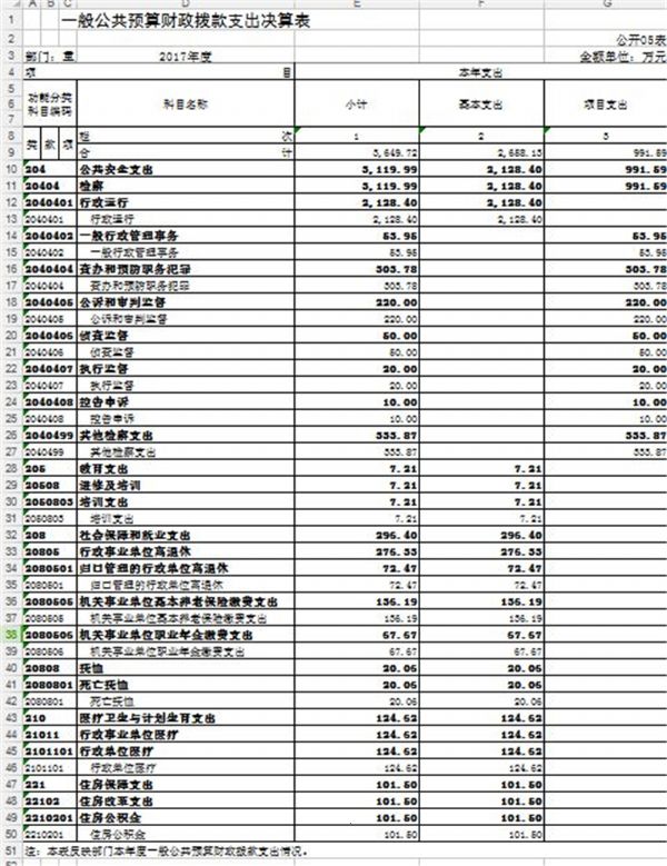 本院2017年度收入总计4,039.29万元,支出总计4,039.29万元。与2016年决算数相比,收支增加798.28万元、增长24.63%,主要原因是(1)人员增加以及司法体制改革后政策性增支,以及办案成本增加;(2)年中追加司法救助资金、抚恤金等。