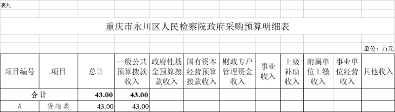 (二)政府采购情况。所属各预算单位政府采购预算总额 43万元:政府采购货物预算43万元、政府采购工程预算0万元、政府采购服务预算0万元;其中一般公共预算拨款政府采购43万元:政府采购货物预算43万元、政府采购工程预算0万元、政府采购服务预算0万元。