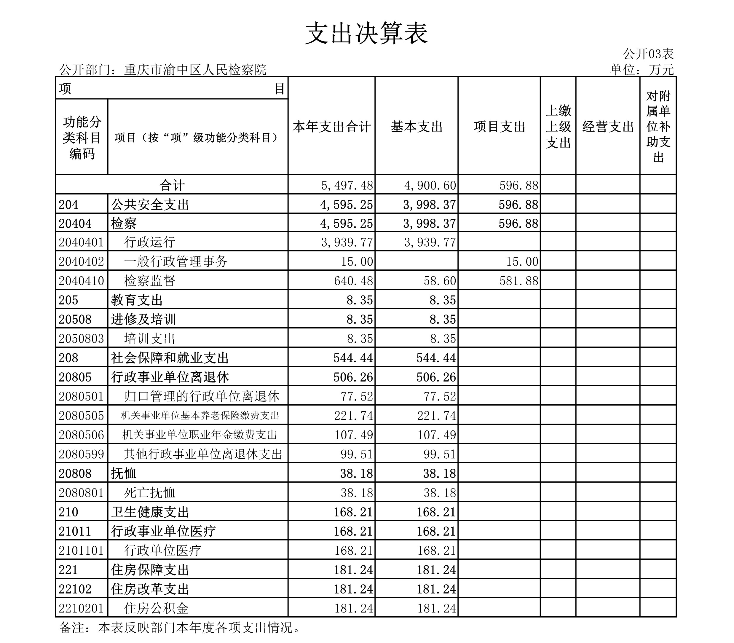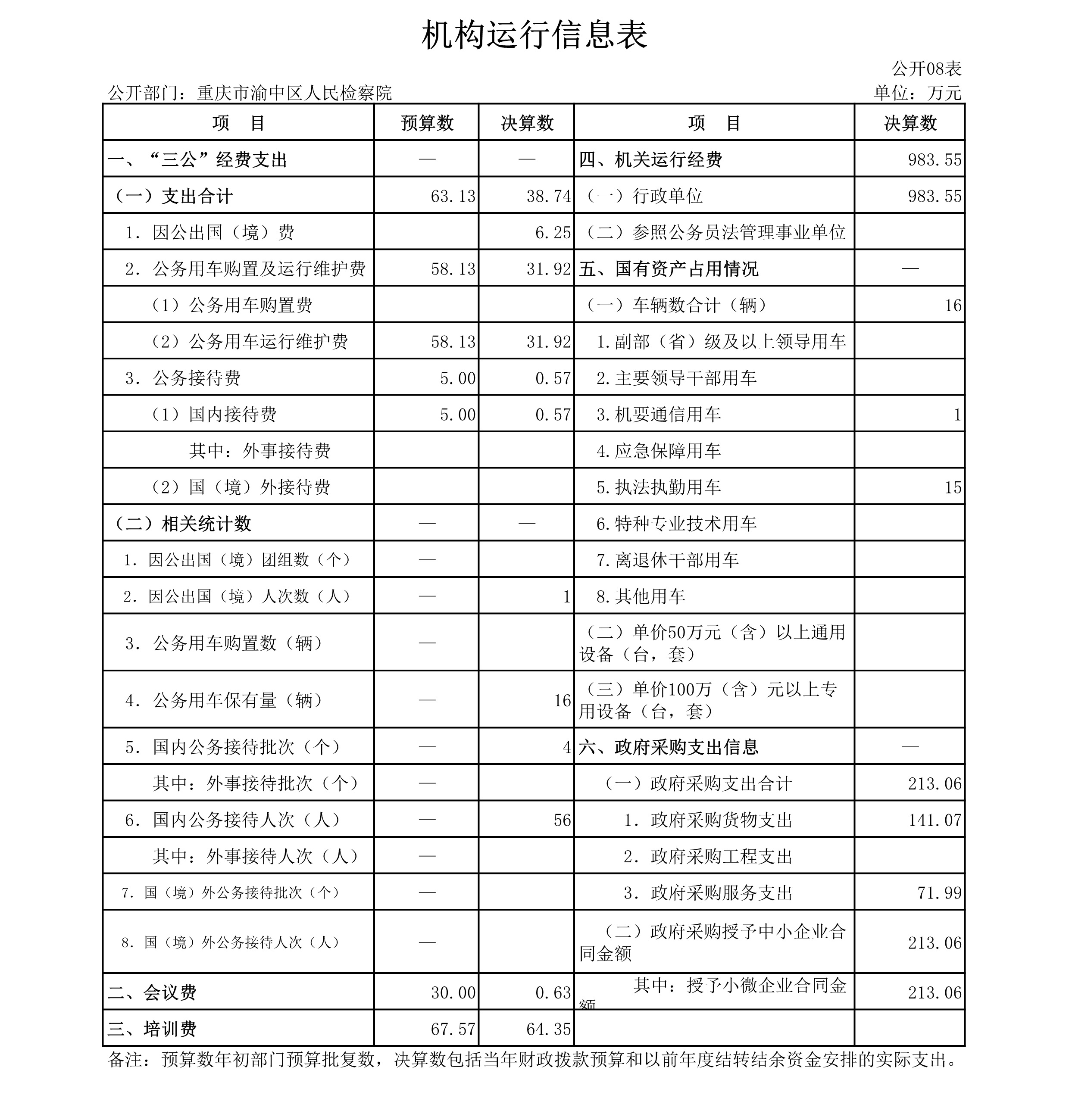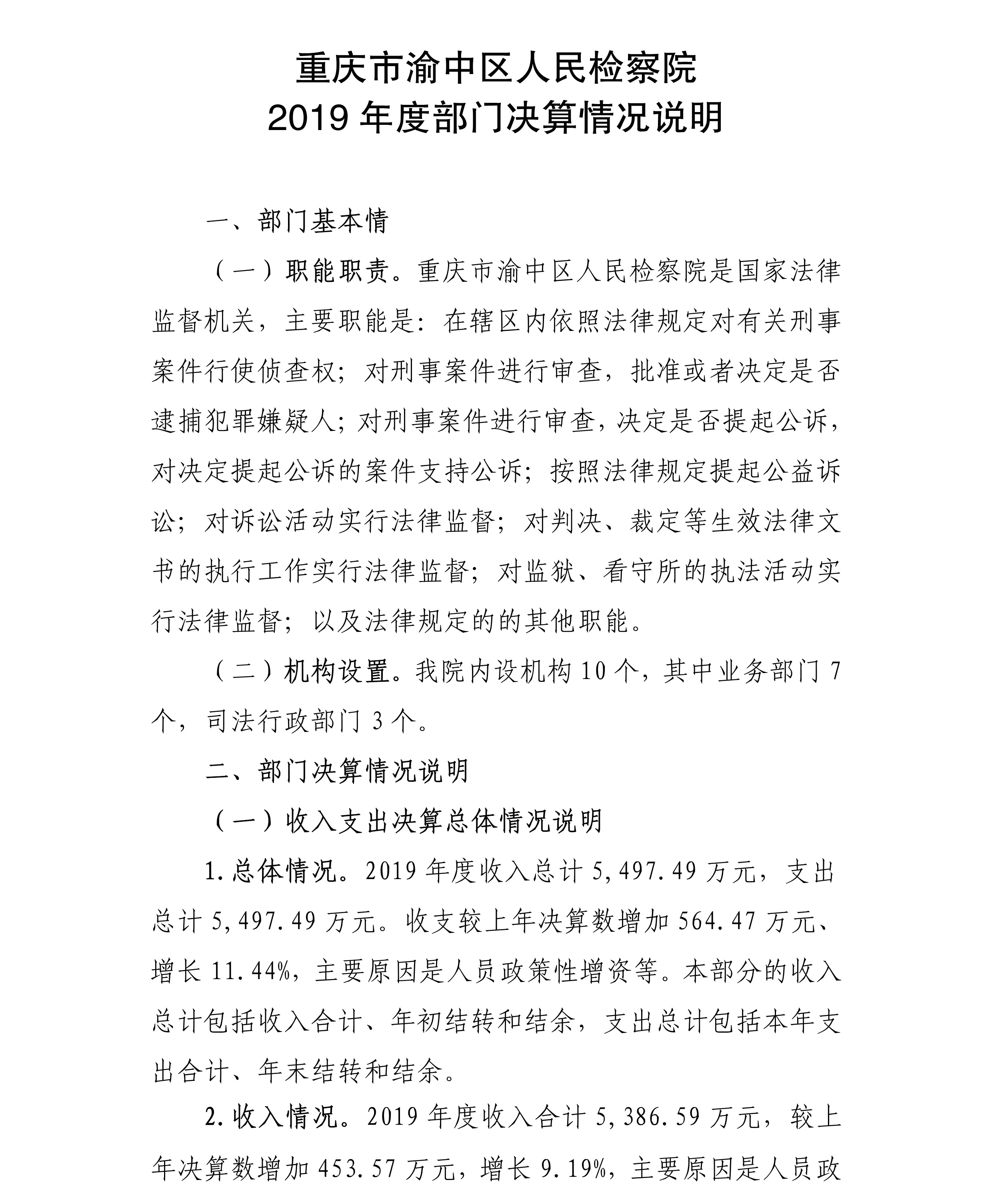 重庆市渝中区人民检察院2019年部门决算情况说明