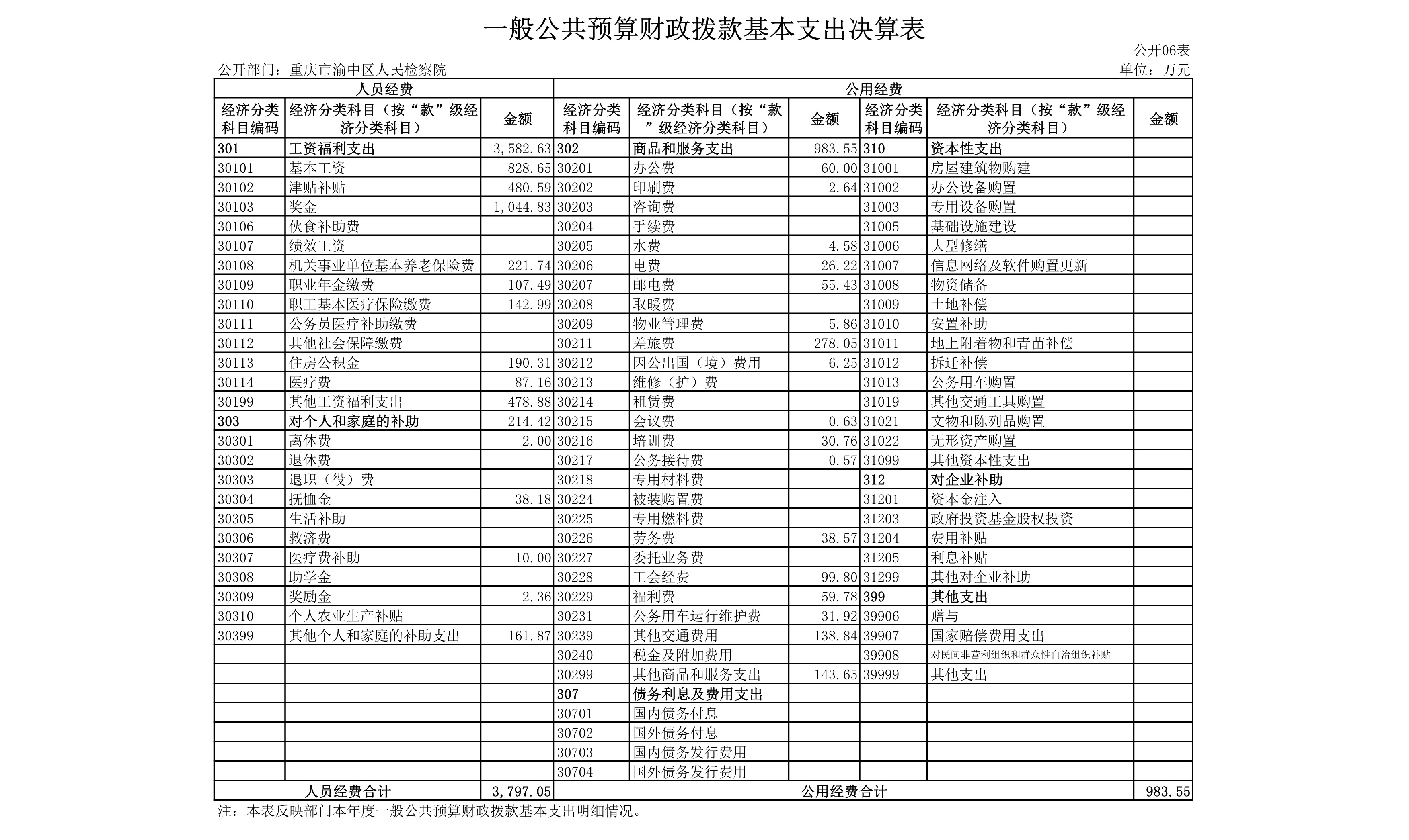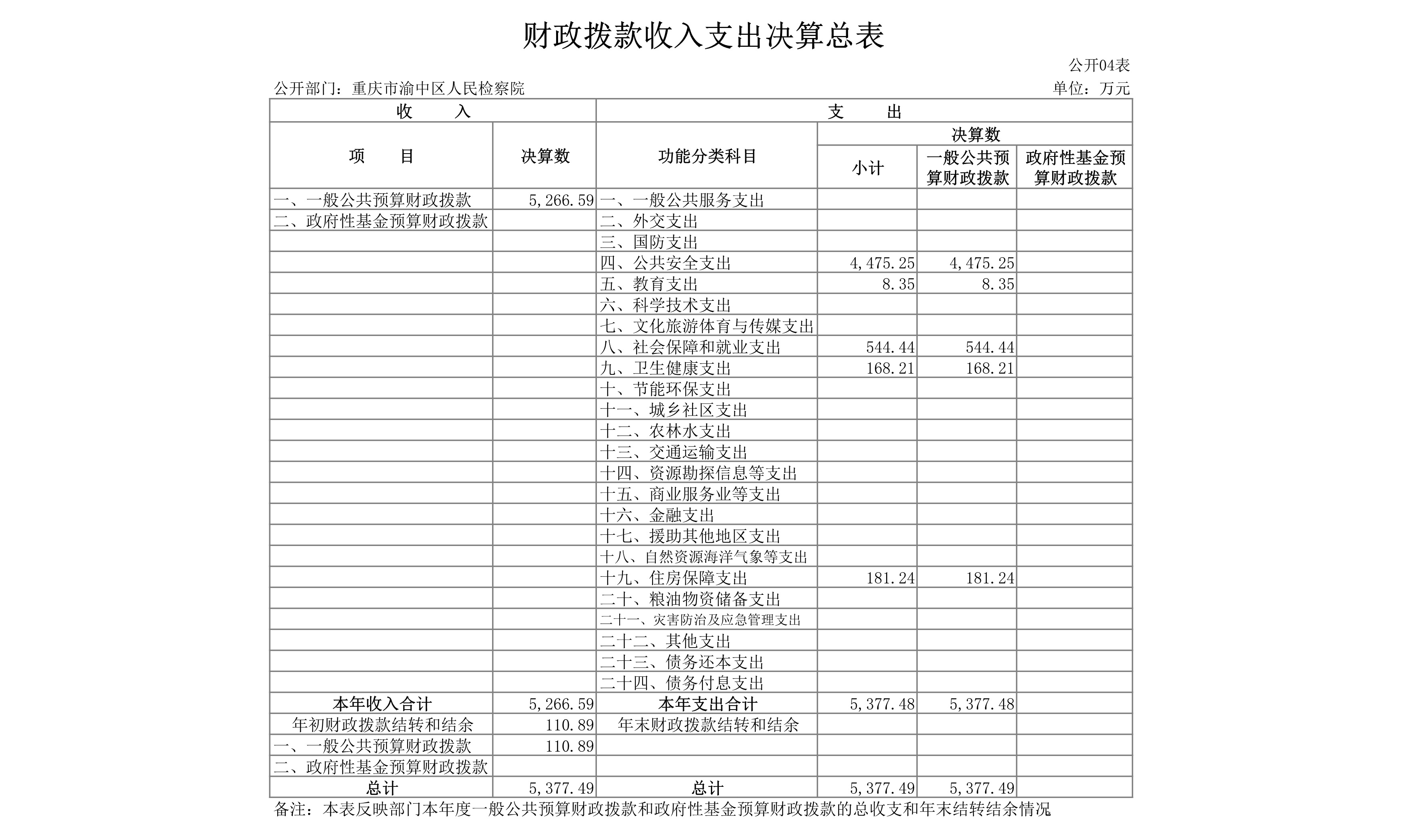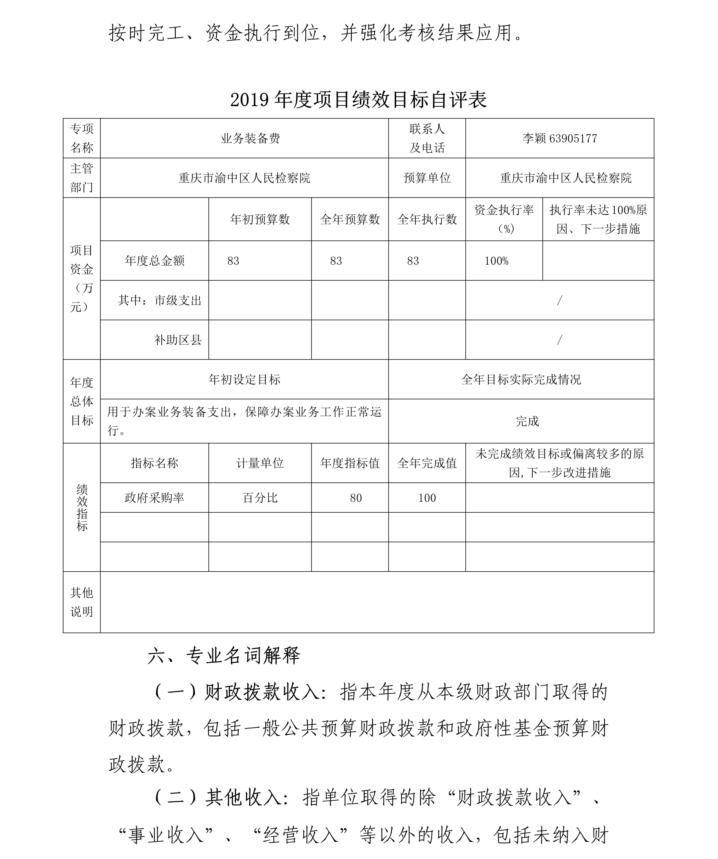 重庆市渝中区人民检察院2019年部门决算情况说明