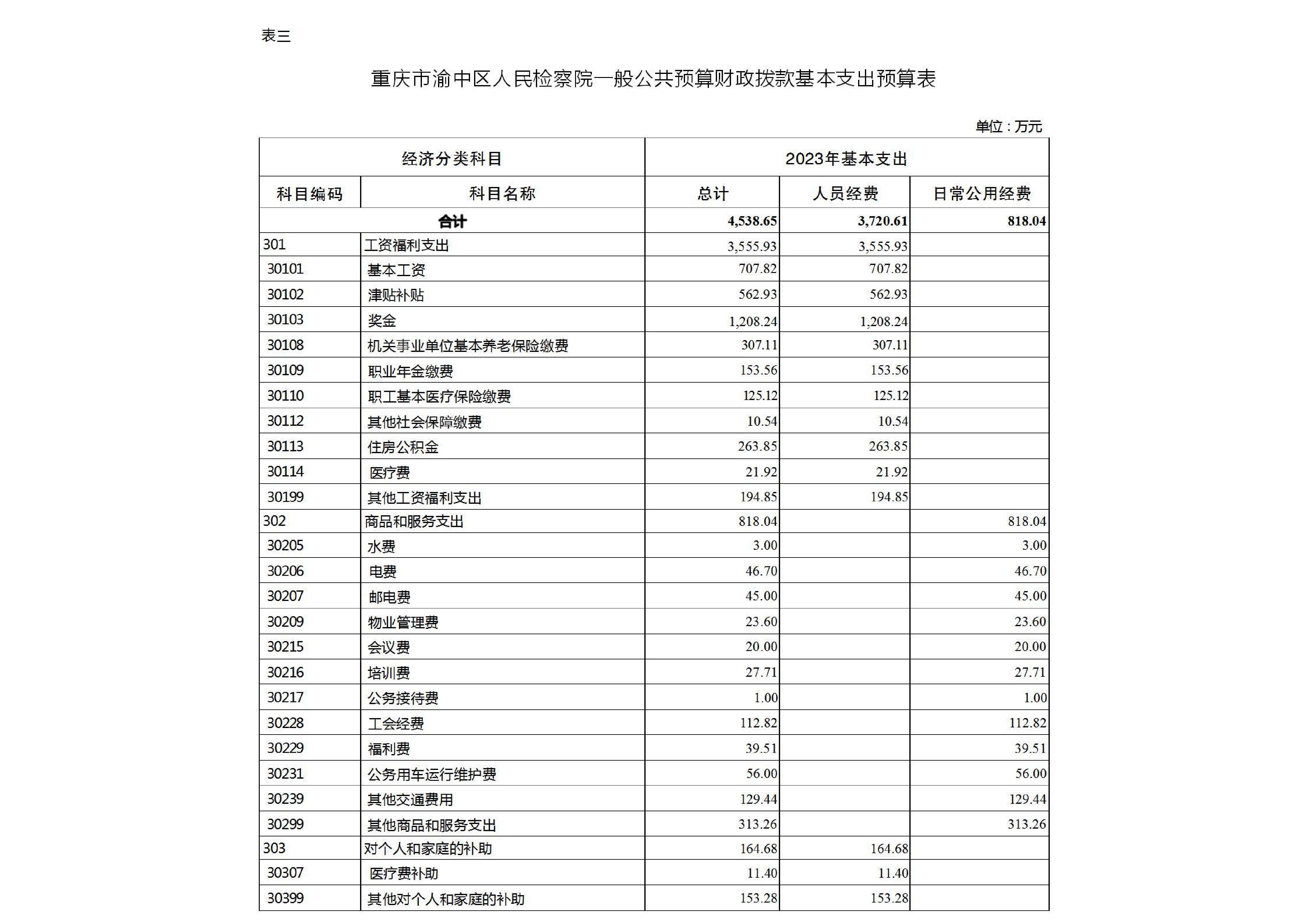 重庆市渝中区人民检察院2023年部门预算公开