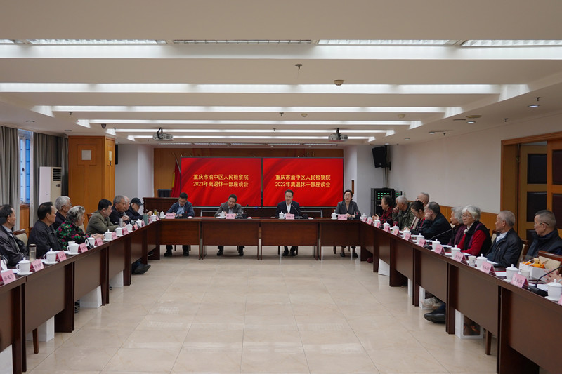 近日上午,渝中区检察院召开2023年离退休干部座谈会。院党组书记、检察长钟晓云与30余名离退休老干部代表进行了亲切座谈,党组成员、纪检组长谢侃和政治部、办公室主要负责人参加了会议。