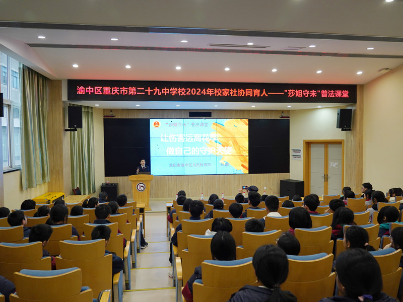 近日,渝中区检察院党组副书记、副检察长彭静受聘担任重庆市渝中区第二十九中法治副校长,并为该校学生讲授了一堂主题为“让伤害远离花季 做自己的守护天使”的特色法治课。