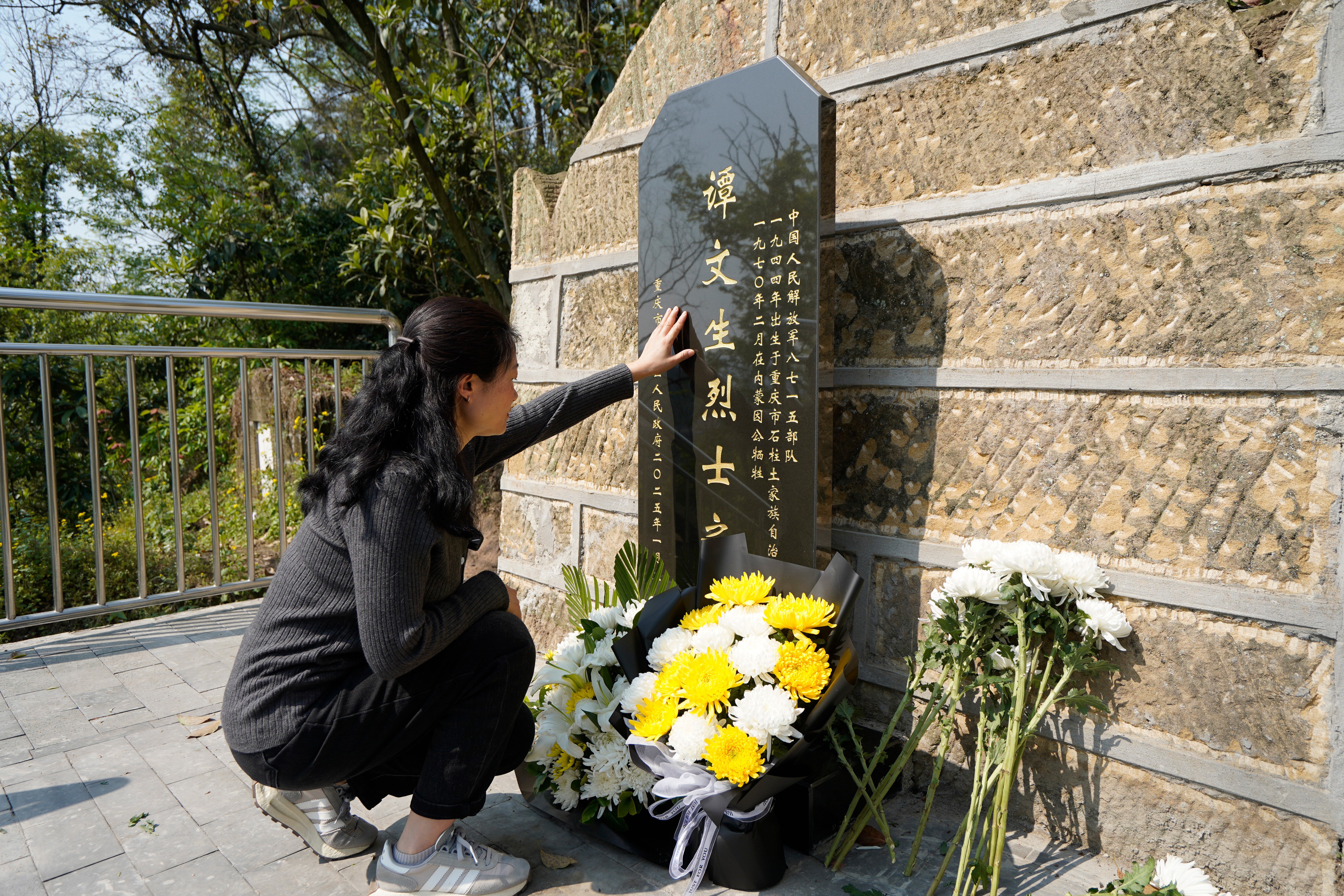 “谭宁福、晋家清、李生……”3月27日,跟随北碚区检察院公益诉讼检察官的脚步,田巧荣来到金刚碑零散烈士集中安葬点,只见一个个崭新的墓碑矗立在修缮一新的烈士墓前。终于,她看到了那个令她丈夫牵挂五十余载的名字——谭文生。