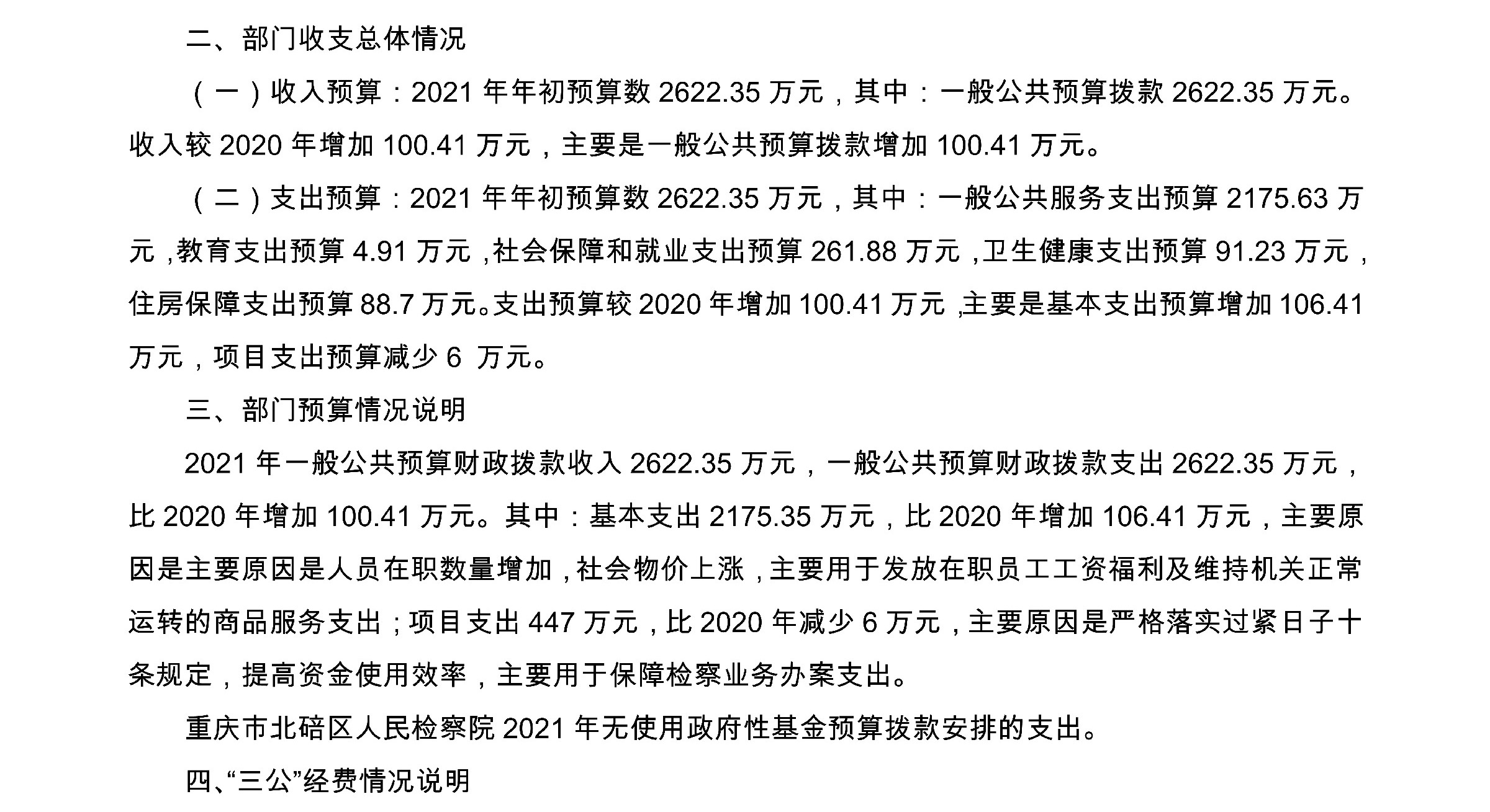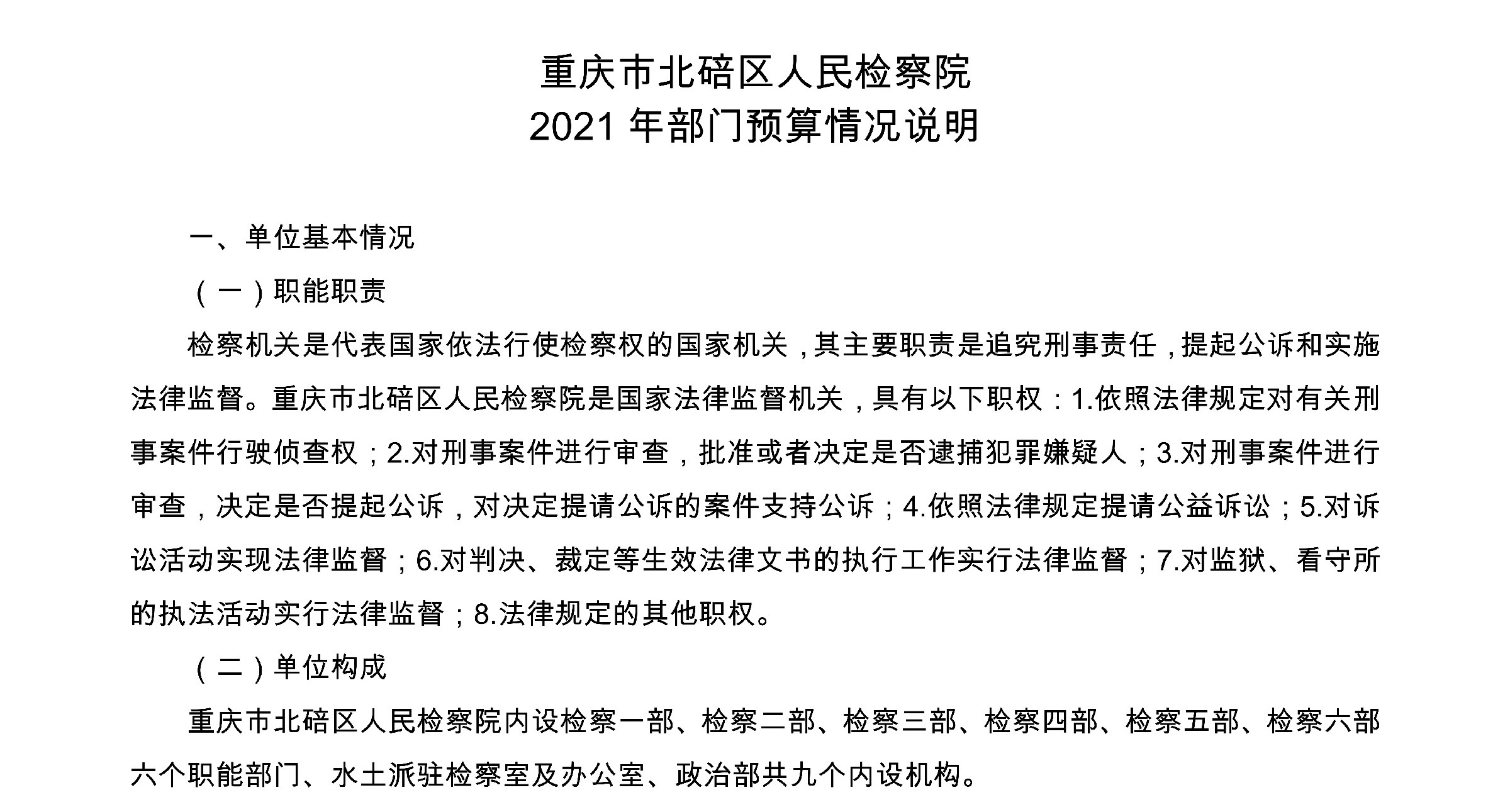 重庆市北碚区人民检察院2021年度部门预算公开