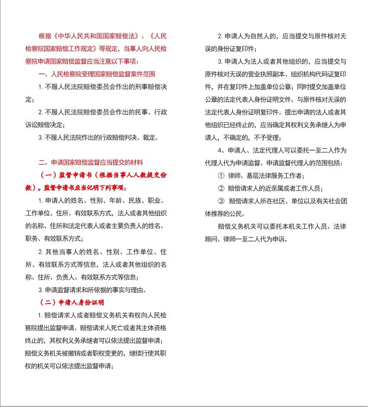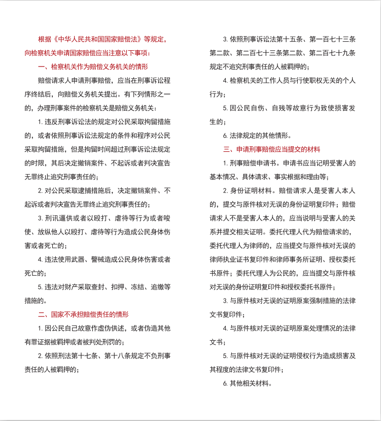 申请国家赔偿须知