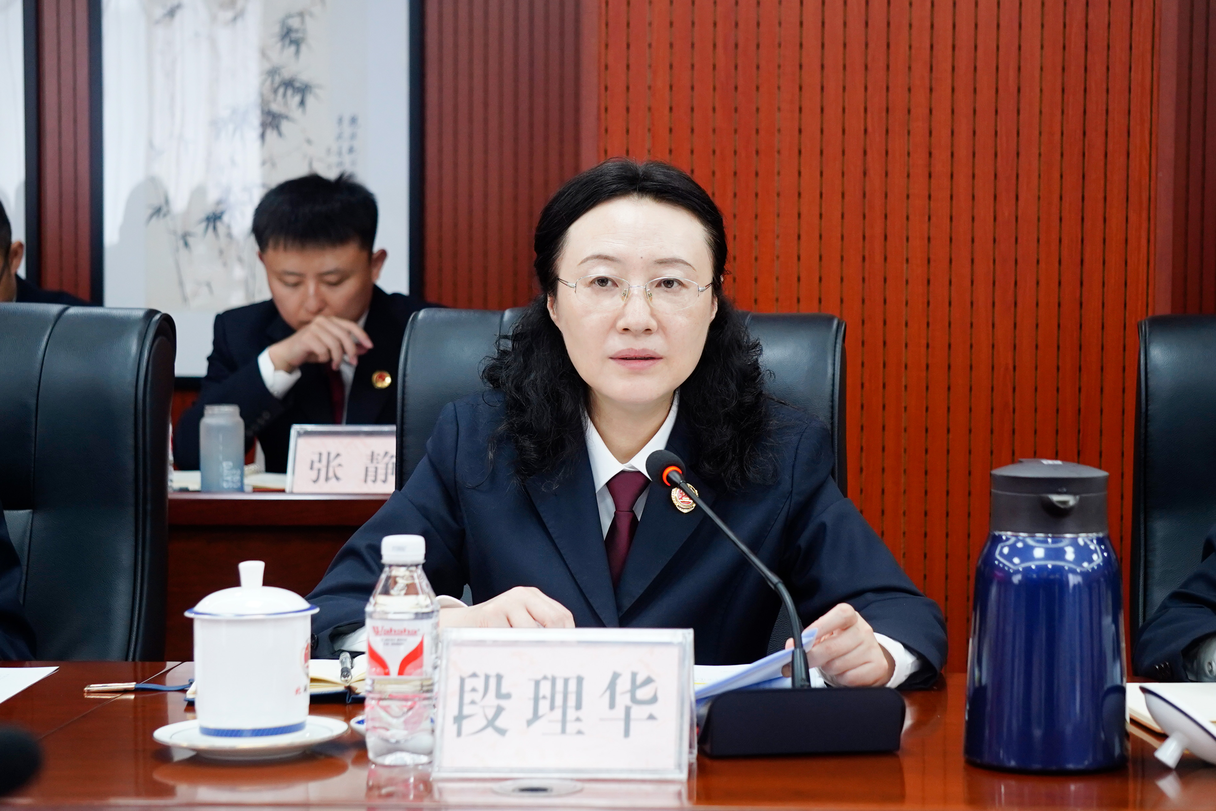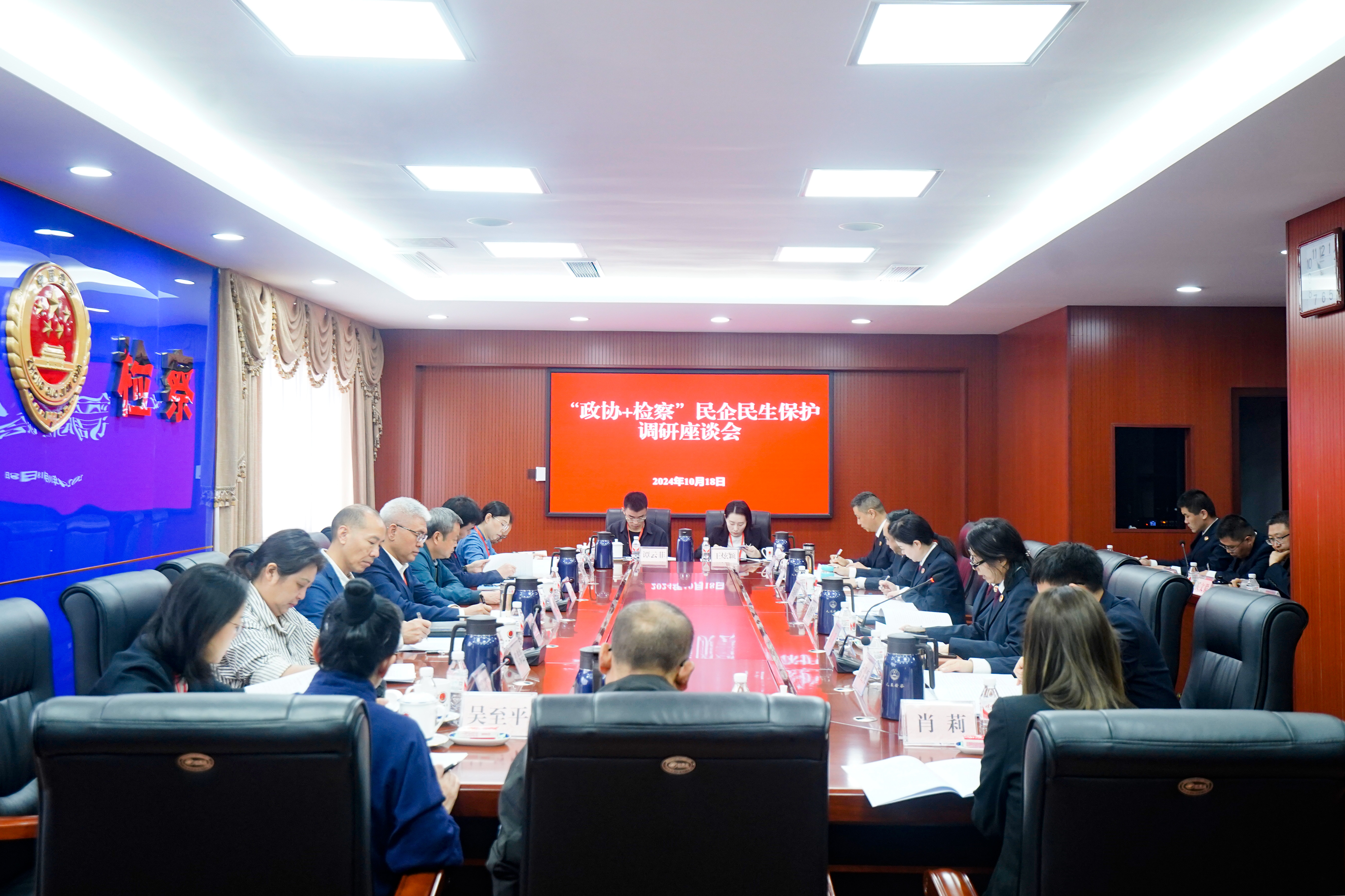 为全面贯彻落实习近平法治思想,更好发挥人民政协民主监督和检察机关法律监督作用,形成监督合力,10月18日,北碚区检察院举行“政协+检察”民企民生保护站揭牌仪式并召开座谈会。区政协主席董伦,该院党组书记、检察长段理华出席会议,区政协党组副书记、一级巡视员董江民,区政协秘书长谢智慧、区政协部分政协委员、区检察院领导班子成员参加会议。