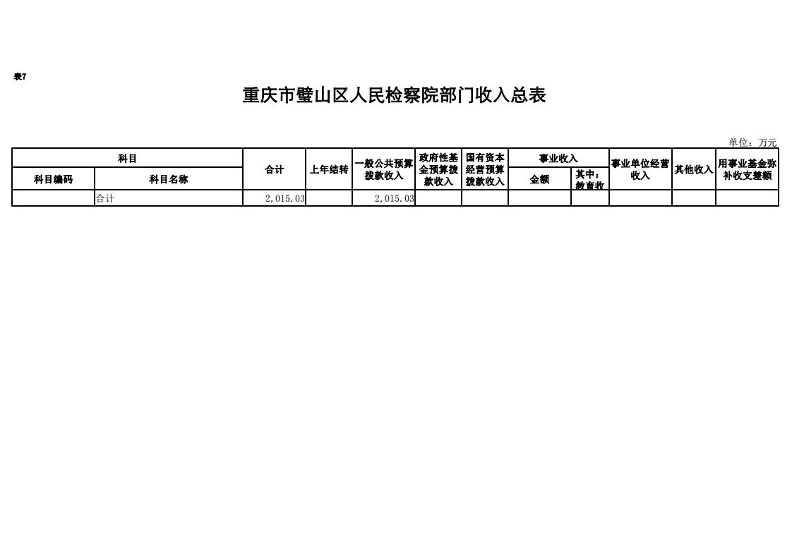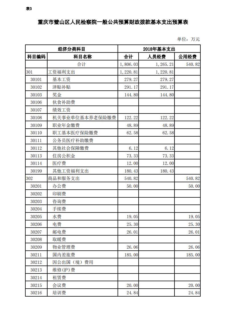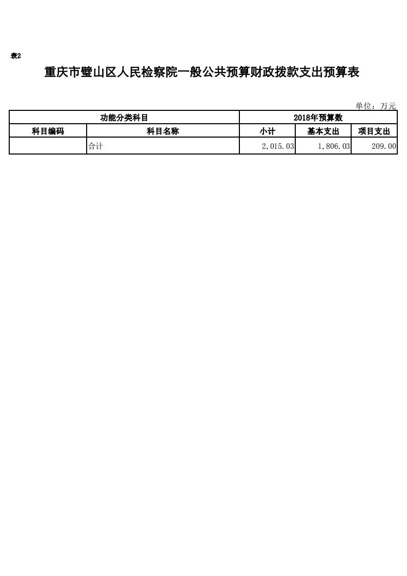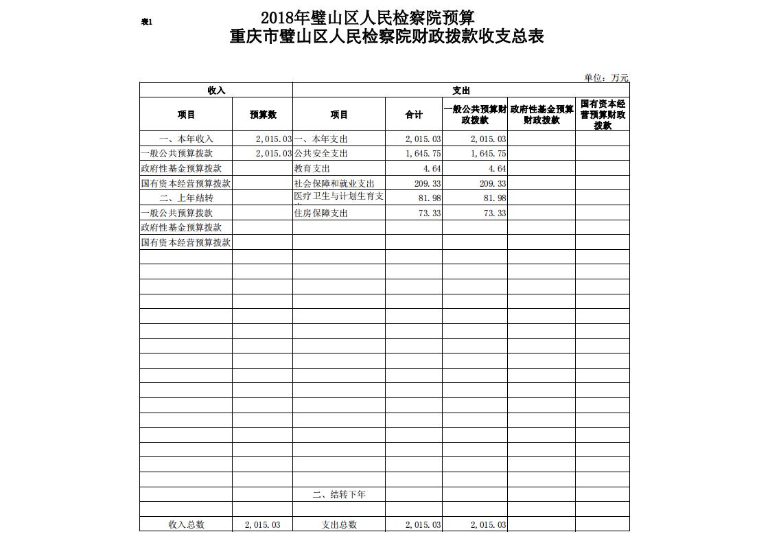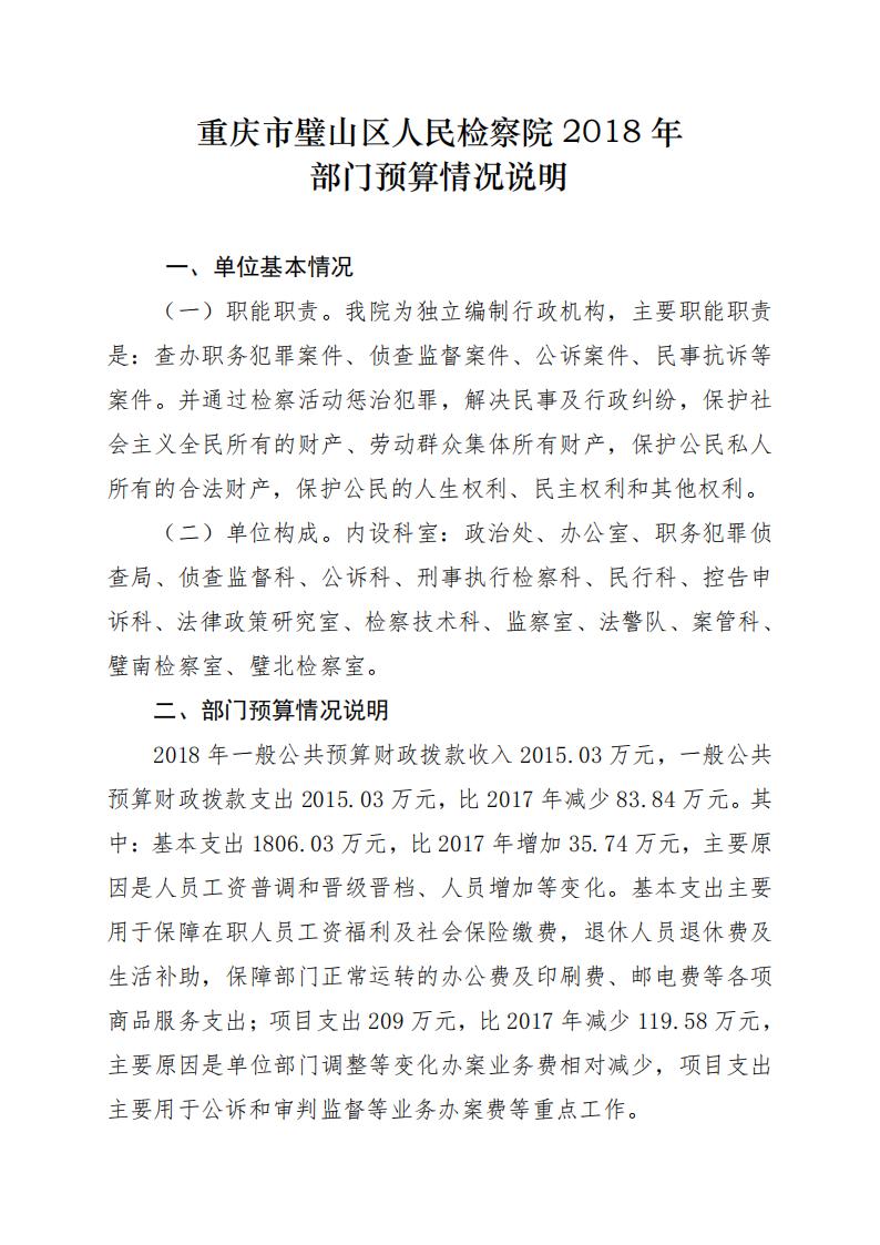 2018年重庆市璧山区人民检察院预算公开