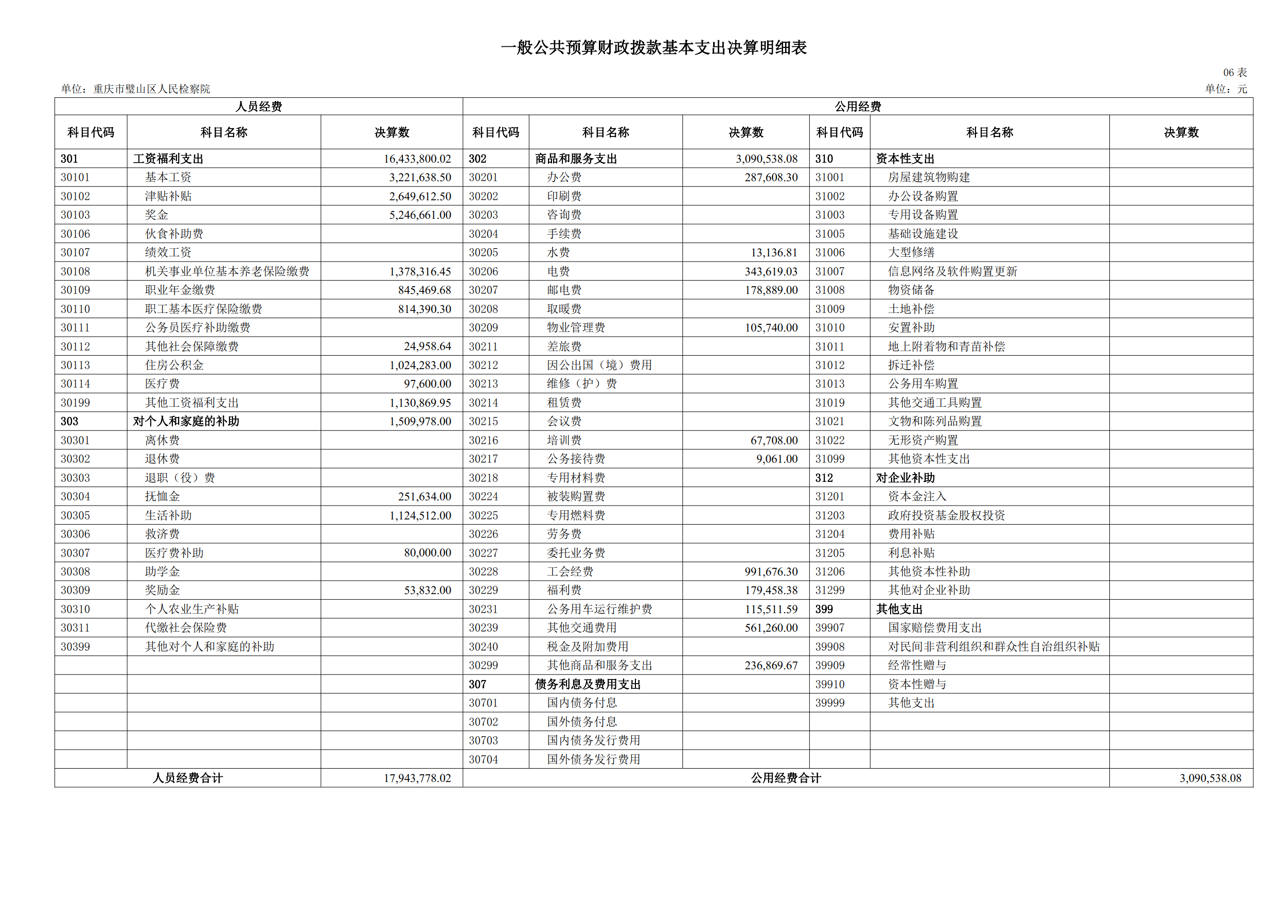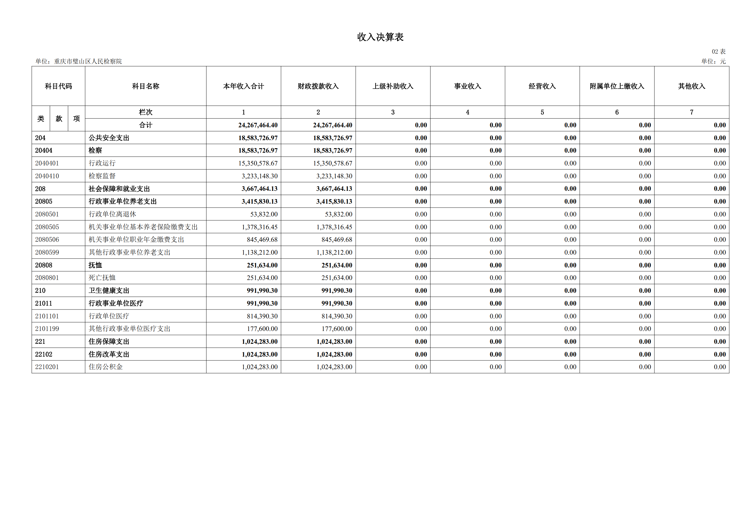 2024年重庆市璧山区人民检察院决算公开