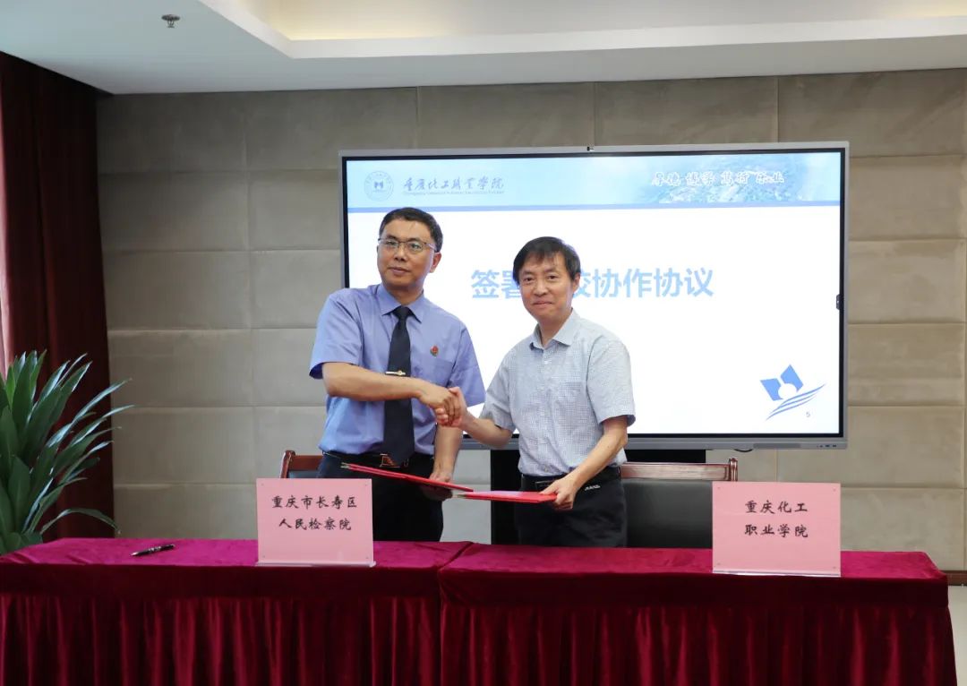 当天,区检察院与重庆化工职业学院签订“助力长寿新材料高地建设检校协作协议”,区检察院检察长刘海东、重庆化工职业学院党委书记宗飞为检校共建轻罪治理实践基地揭牌。
