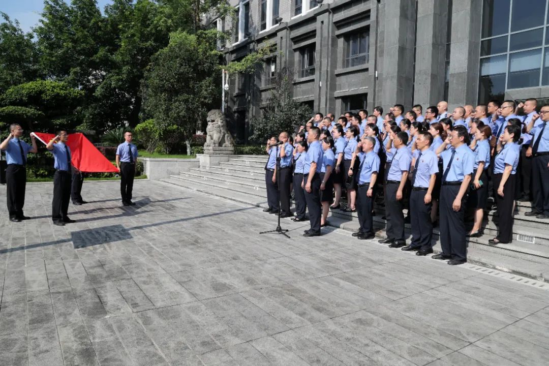 升旗仪式结束后,在院党组书记、检察长陈康的带领下,全体党员干警举起右拳面对鲜红的党旗庄严宣誓,一句句誓词铿锵有力,发自肺腑,催人奋进,昭示着为民服务的拳拳初心。
