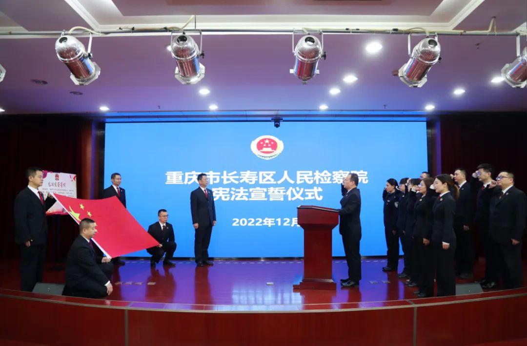 12月8日,长寿区检察院开展宪法宣誓活动,在庄重严肃的会场上,在院党组书记、检察长陈康的监誓下,检察一部主任、检委会委员龚森平同志领誓,11名新任检委会委员、新入额检察官、新提拔科级干部及新进人员面对鲜红的国旗庄严宣誓。一句句誓词铿锵有力,一声声承诺掷地有声,会场上回荡的誓词充分表达了大家忠诚宪法、恪尽职守、公正司法、廉洁奉公的坚定决心。