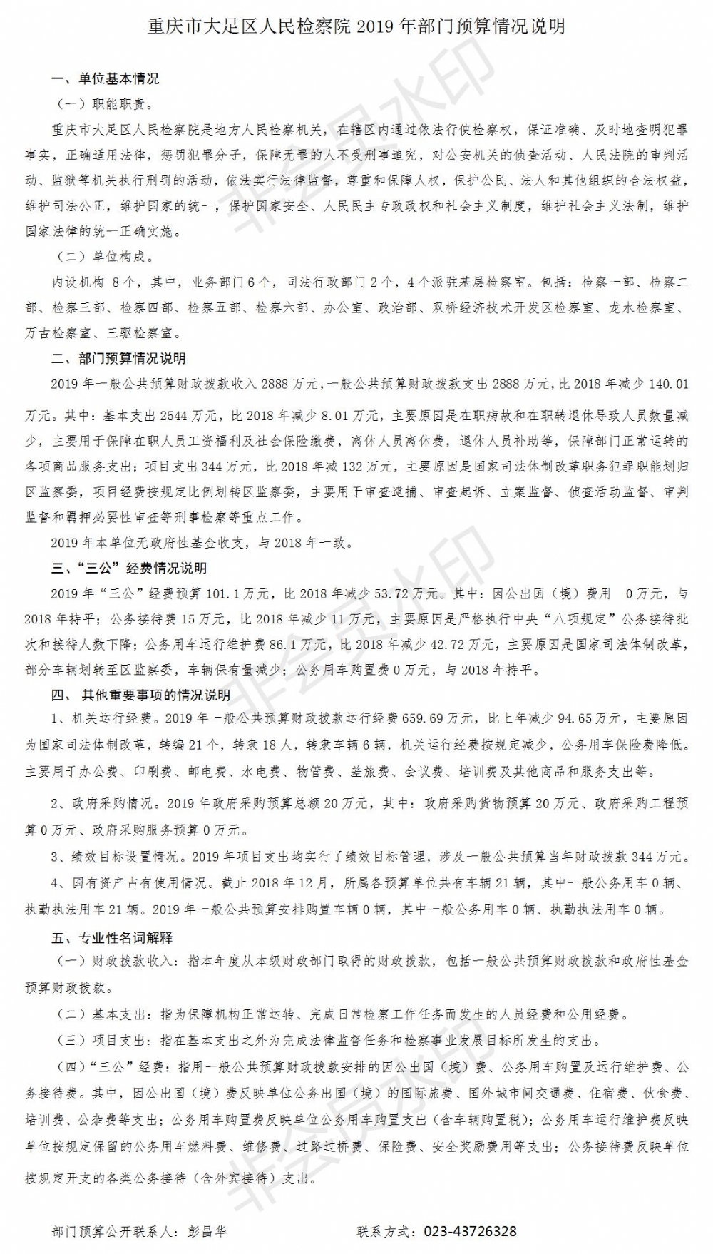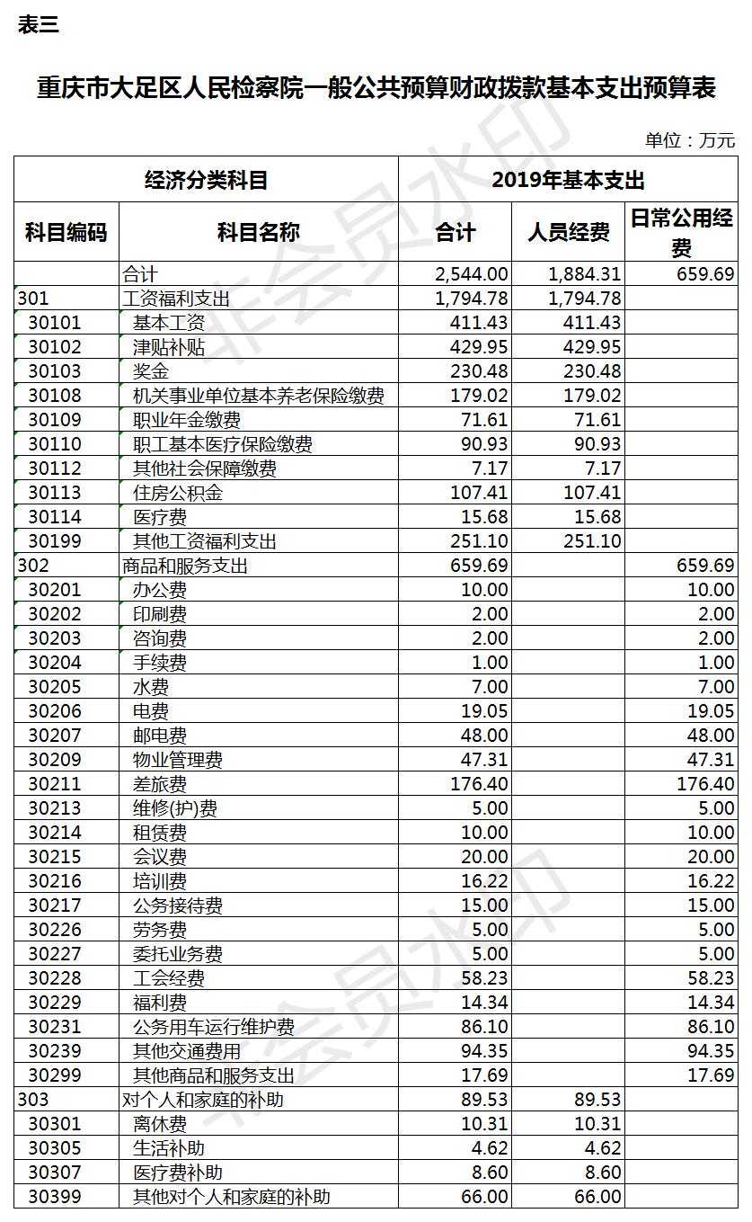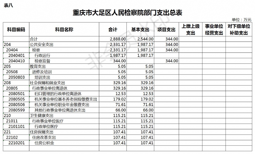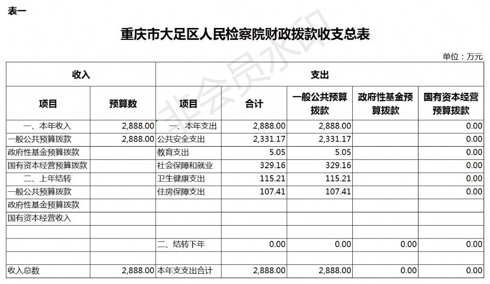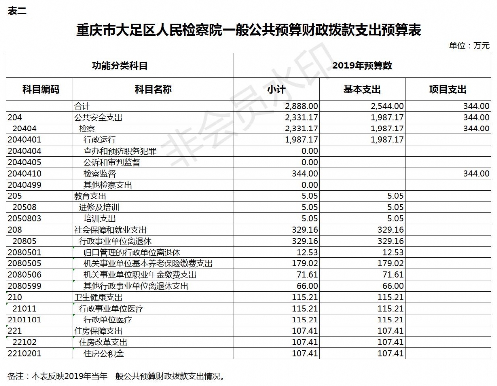 重庆市大足区人民检察院2019年部门预算公开