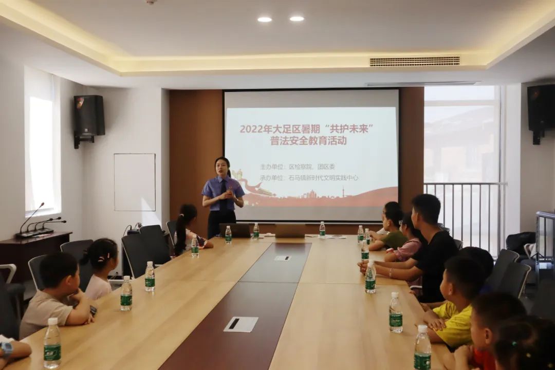 “同学们,快乐的暑假到来了,但安全和法治意识可不能‘放假’松懈……”近日,大足区检察院联合团区委前往辖区石马镇新时代文明实践中心,开展2022年暑期“共护未来”普法安全教育活动。
