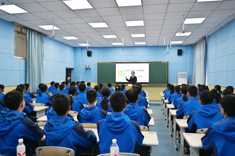 授课伊始,师生们集体观看了大足区检察院自制并荣获全国法治动漫微视频作品征集展示活动一等奖、全国检察系统“三微”作品征集展播活动微动漫类十佳作品等奖项的普法动漫《青春无毒》。
