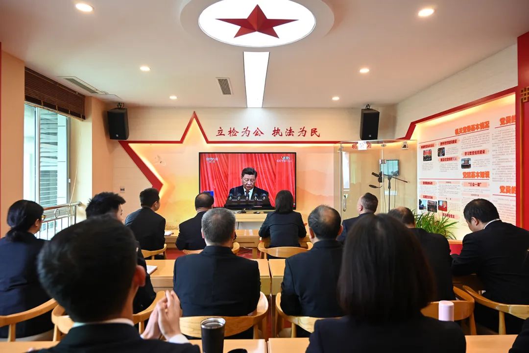 大家纷纷表示,将坚持以习近平新时代中国特色社会主义思想为指导,坚持党对检察工作的绝对领导,把学习宣传贯彻党的二十大精神作为当前和今后一个时期最重要的政治任务,切实把思想和行动统一到党中央决策部署上来,牢记初心使命、依法能动履职,以检察工作高质量发展服务保障经济社会高质量发展,为全面建设社会主义现代化国家、实现中华民族伟大复兴贡献检察力量。
