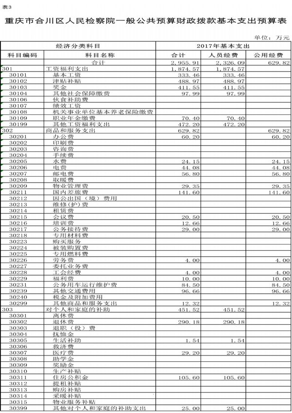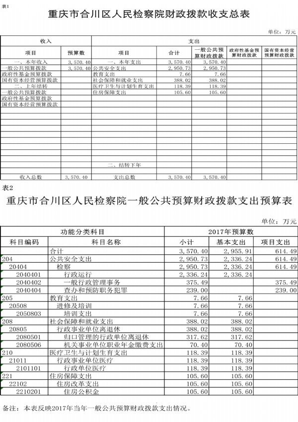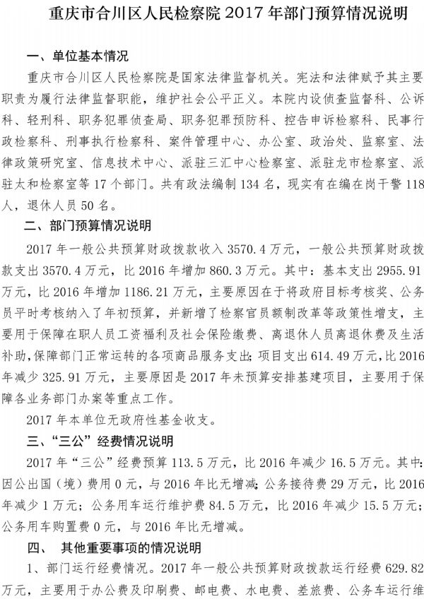 重庆市合川区人民检察院2017年度部门预算公开
