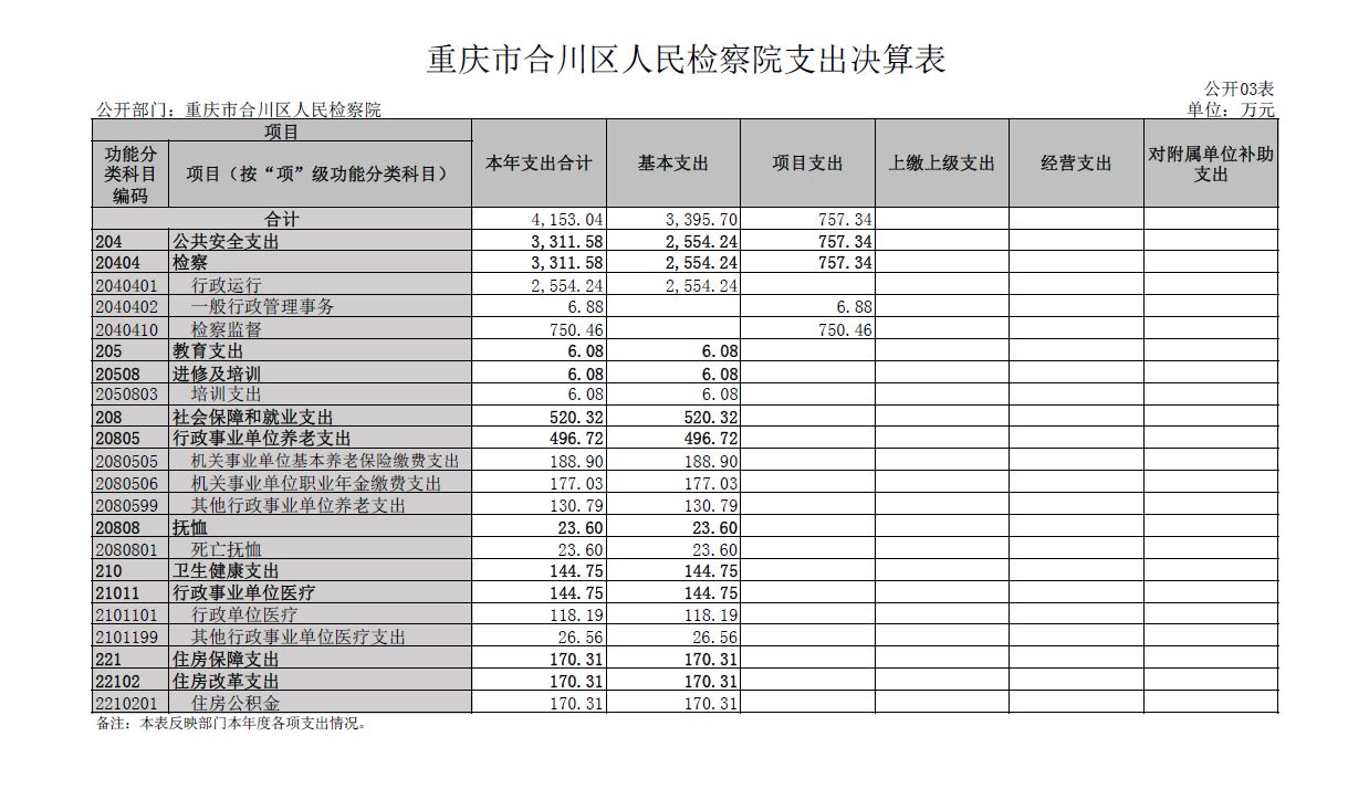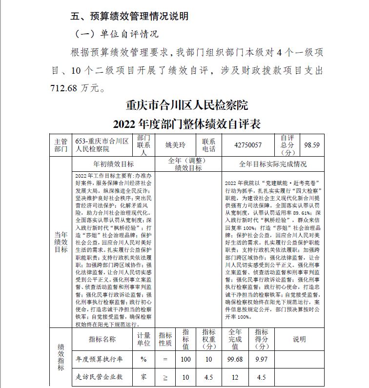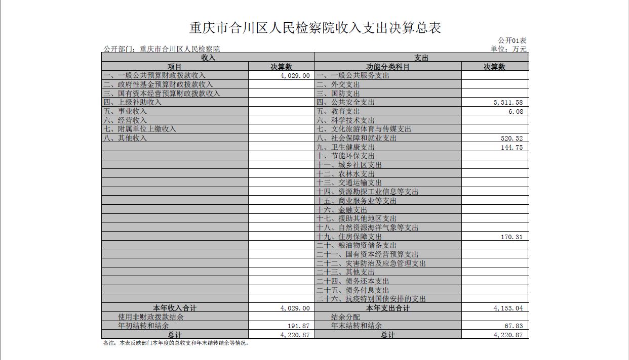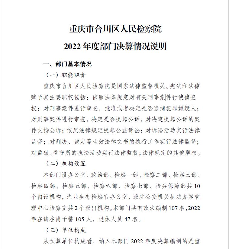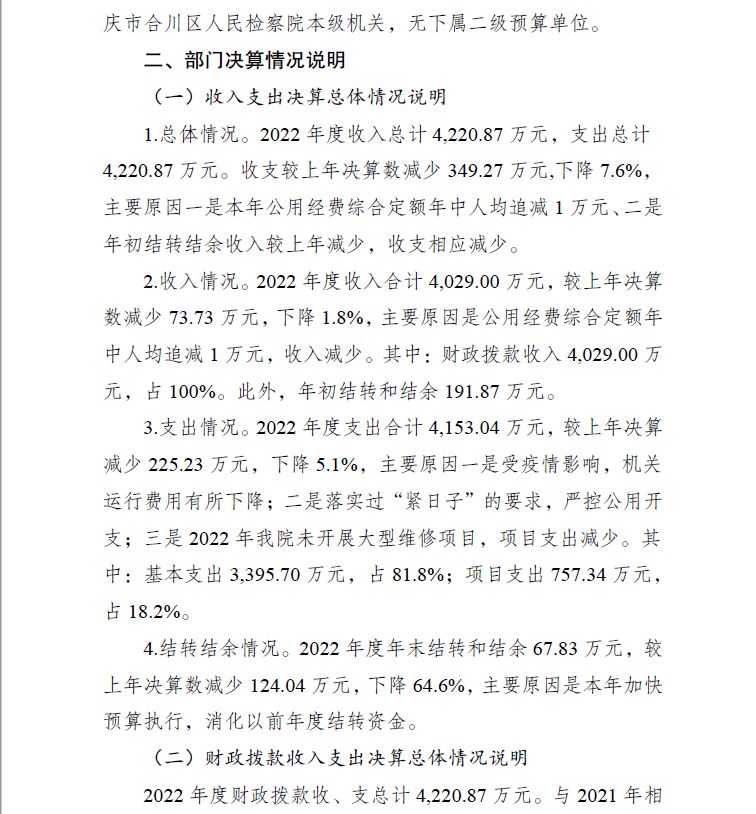 重庆市合川区人民检察院2022年部门决算公开
