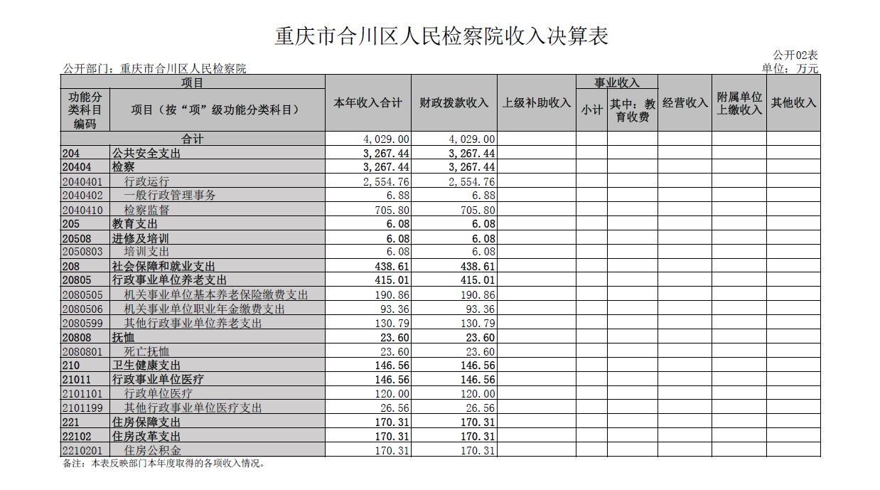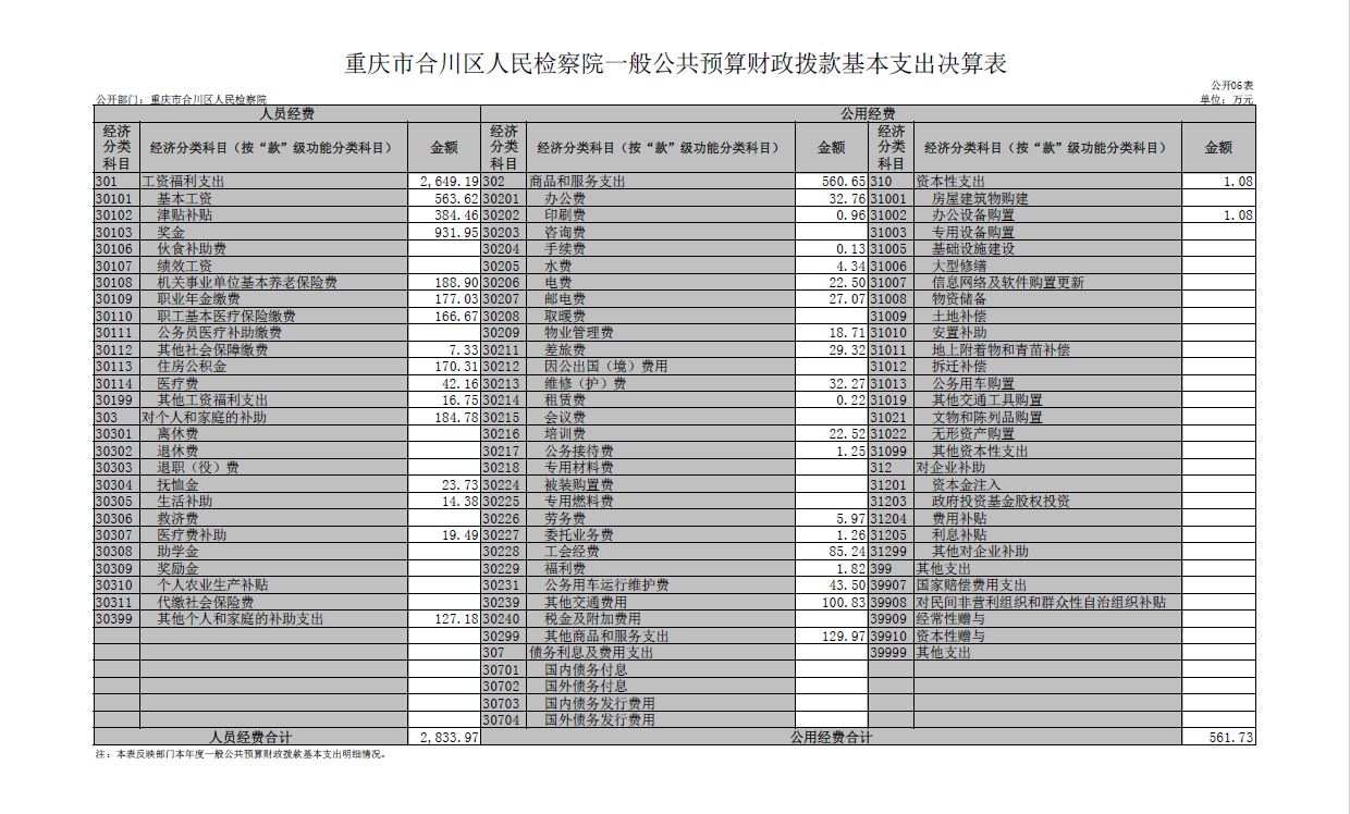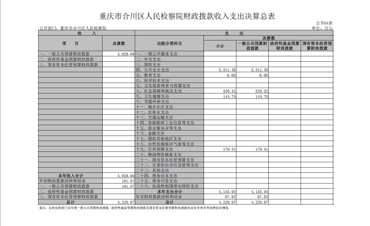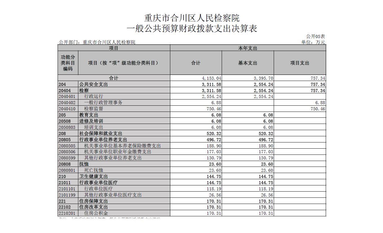 重庆市合川区人民检察院2022年部门决算公开