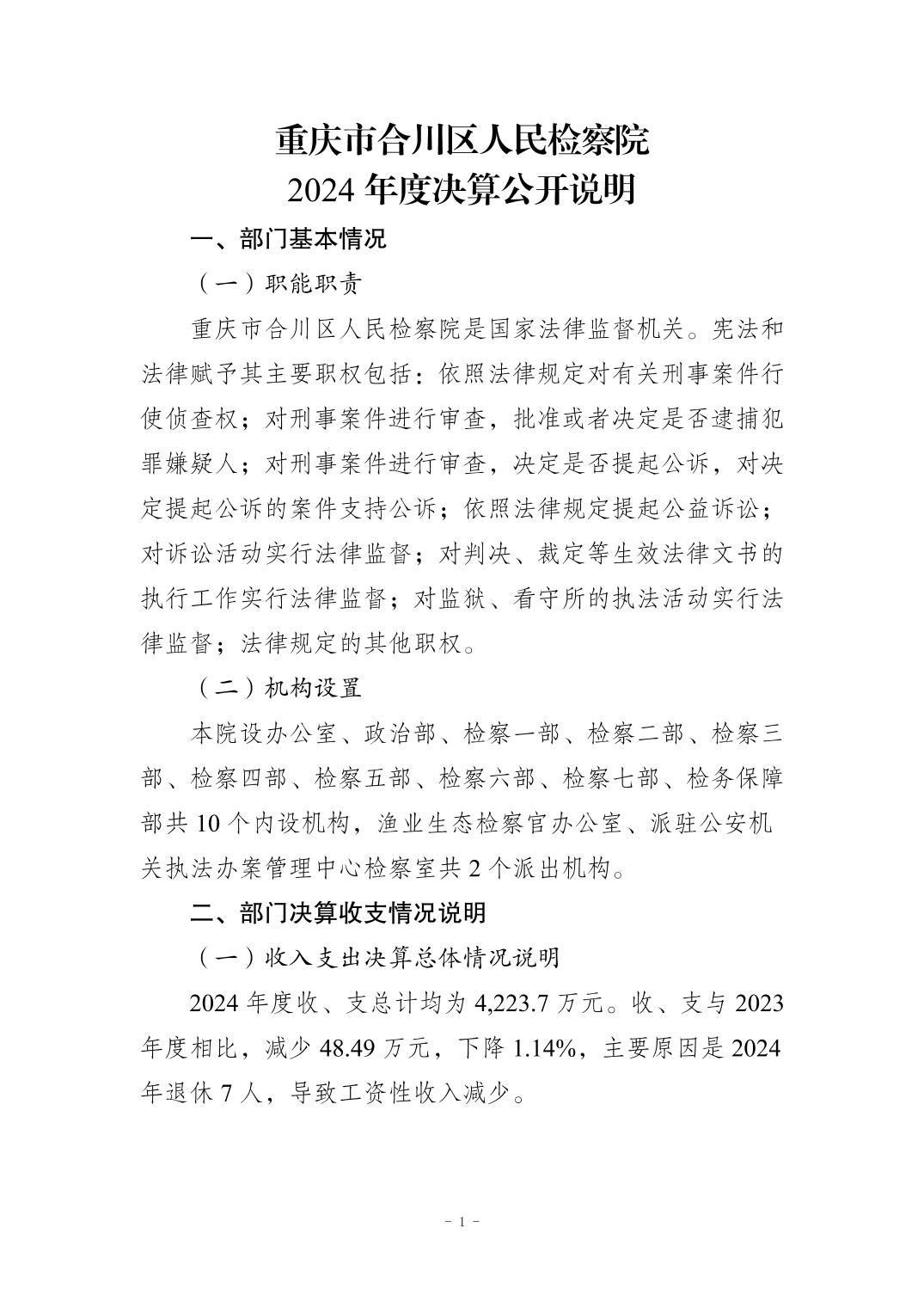 重庆市合川区人民检察院2024年度部门决算公开