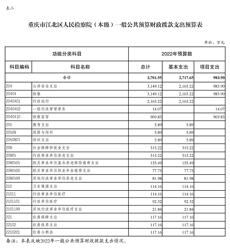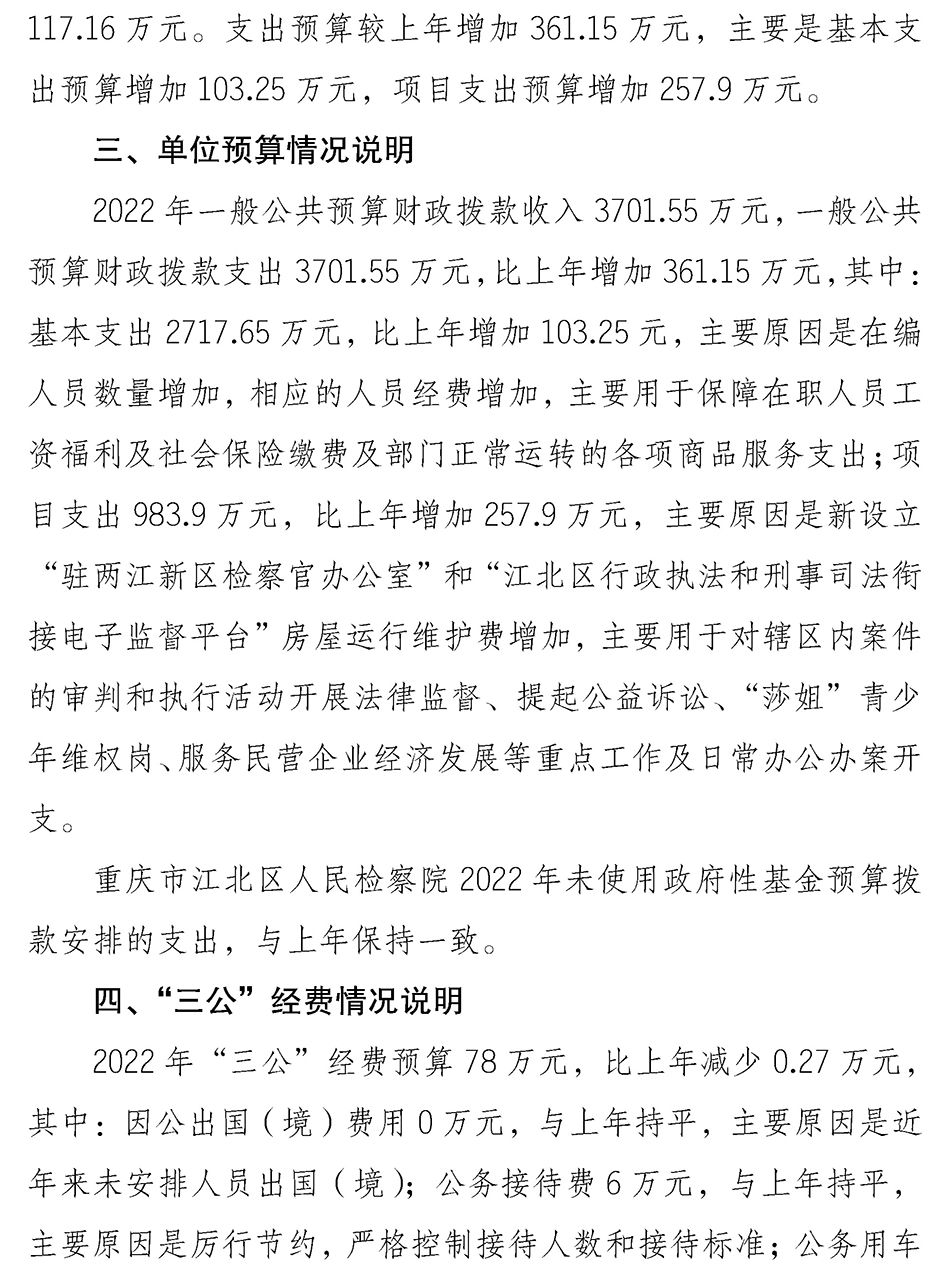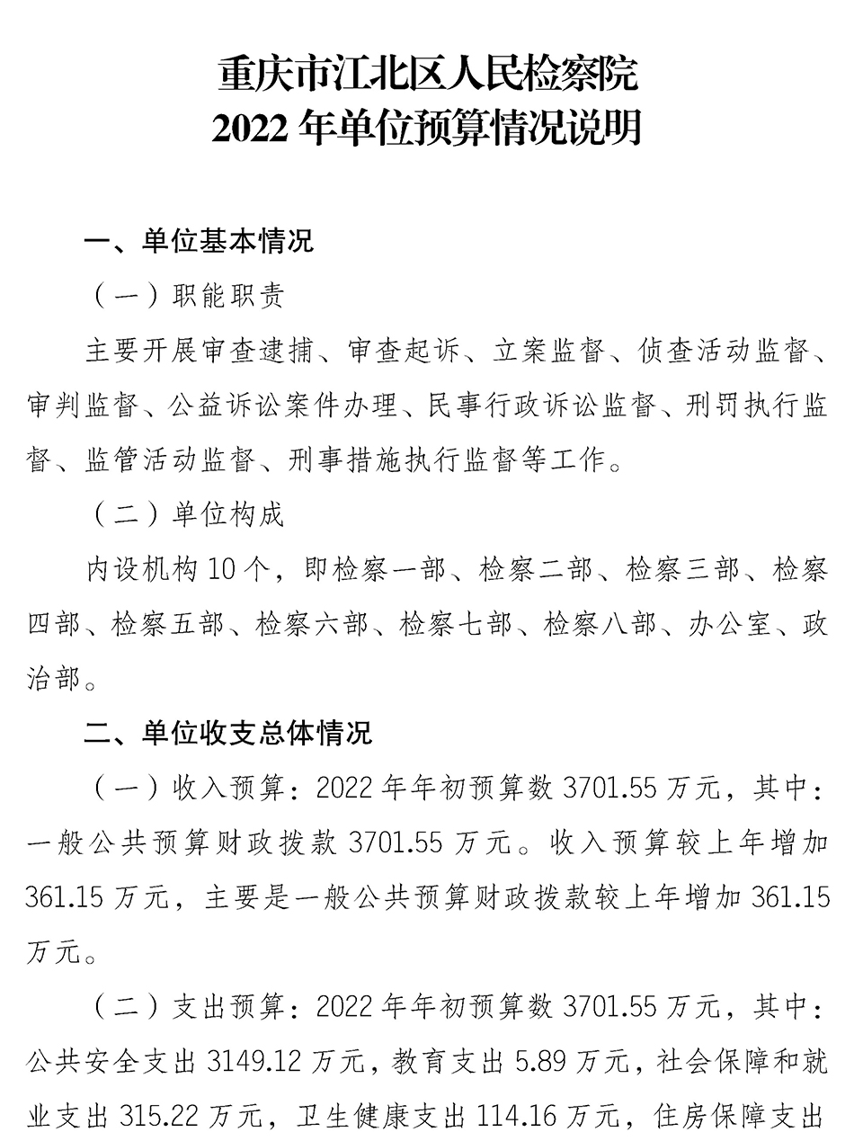 重庆市江北区人民检察院(本级)2022年度预算公开