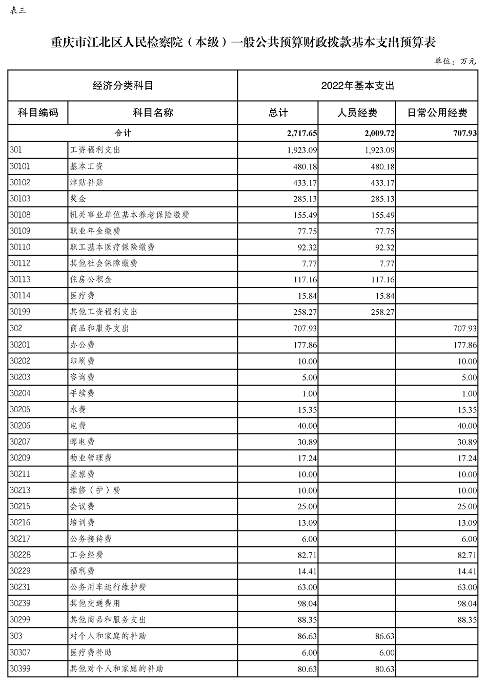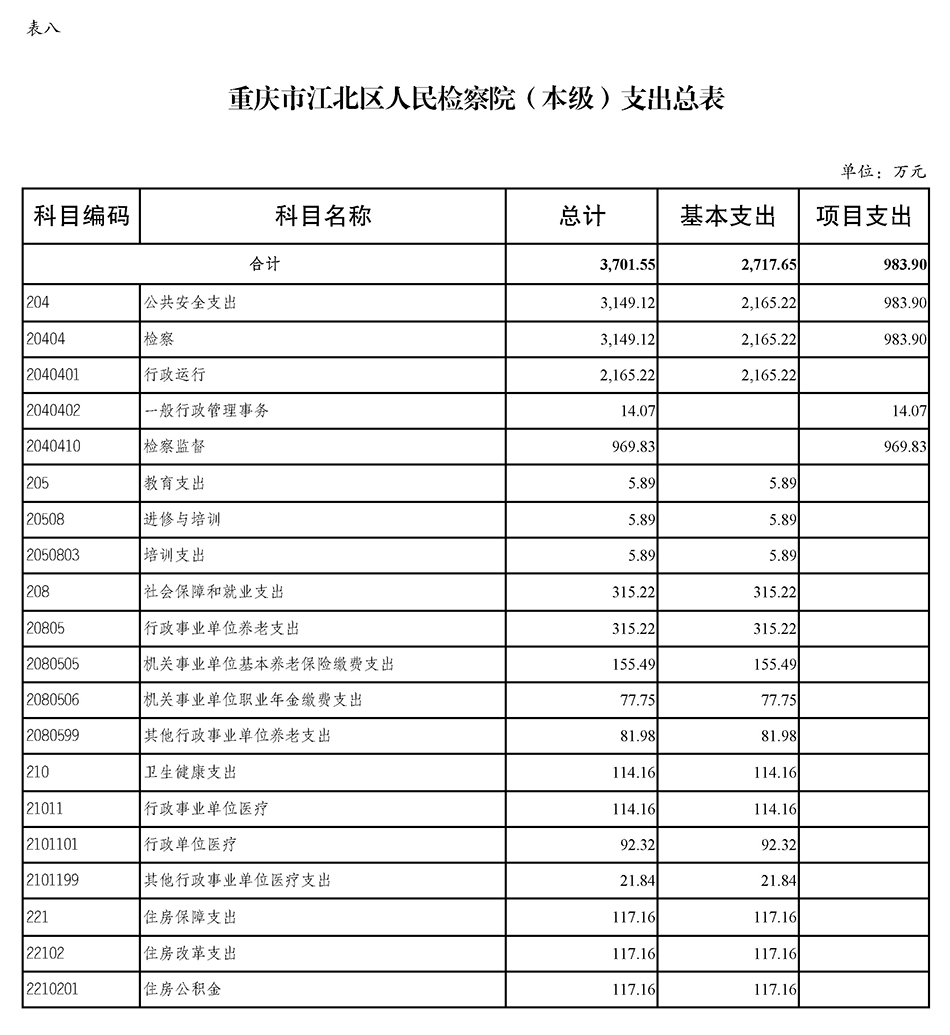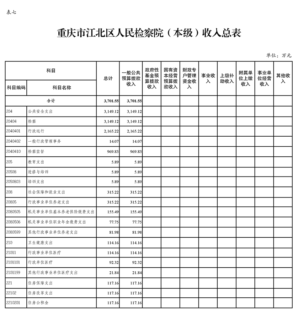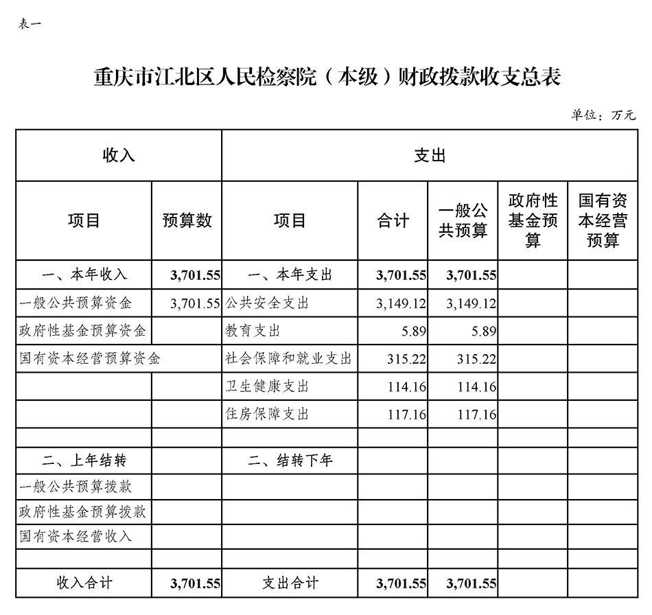 重庆市江北区人民检察院(本级)2022年度预算公开