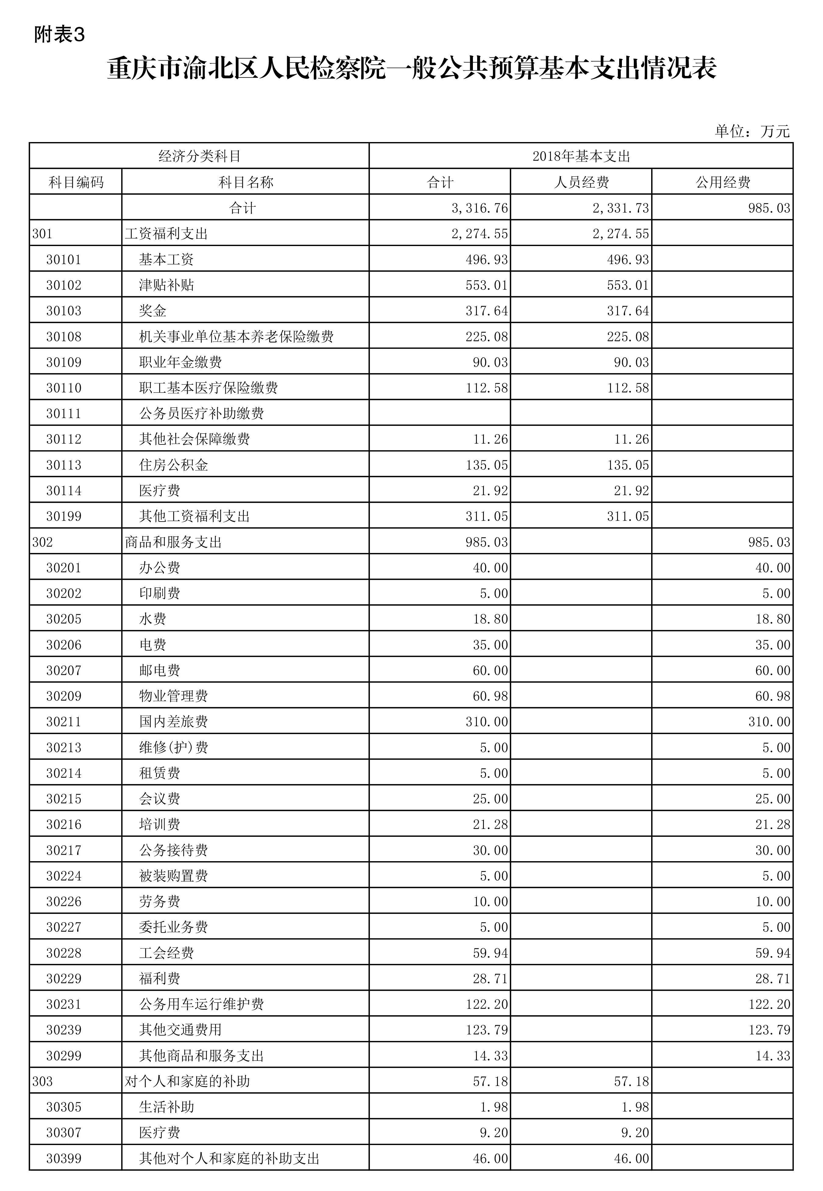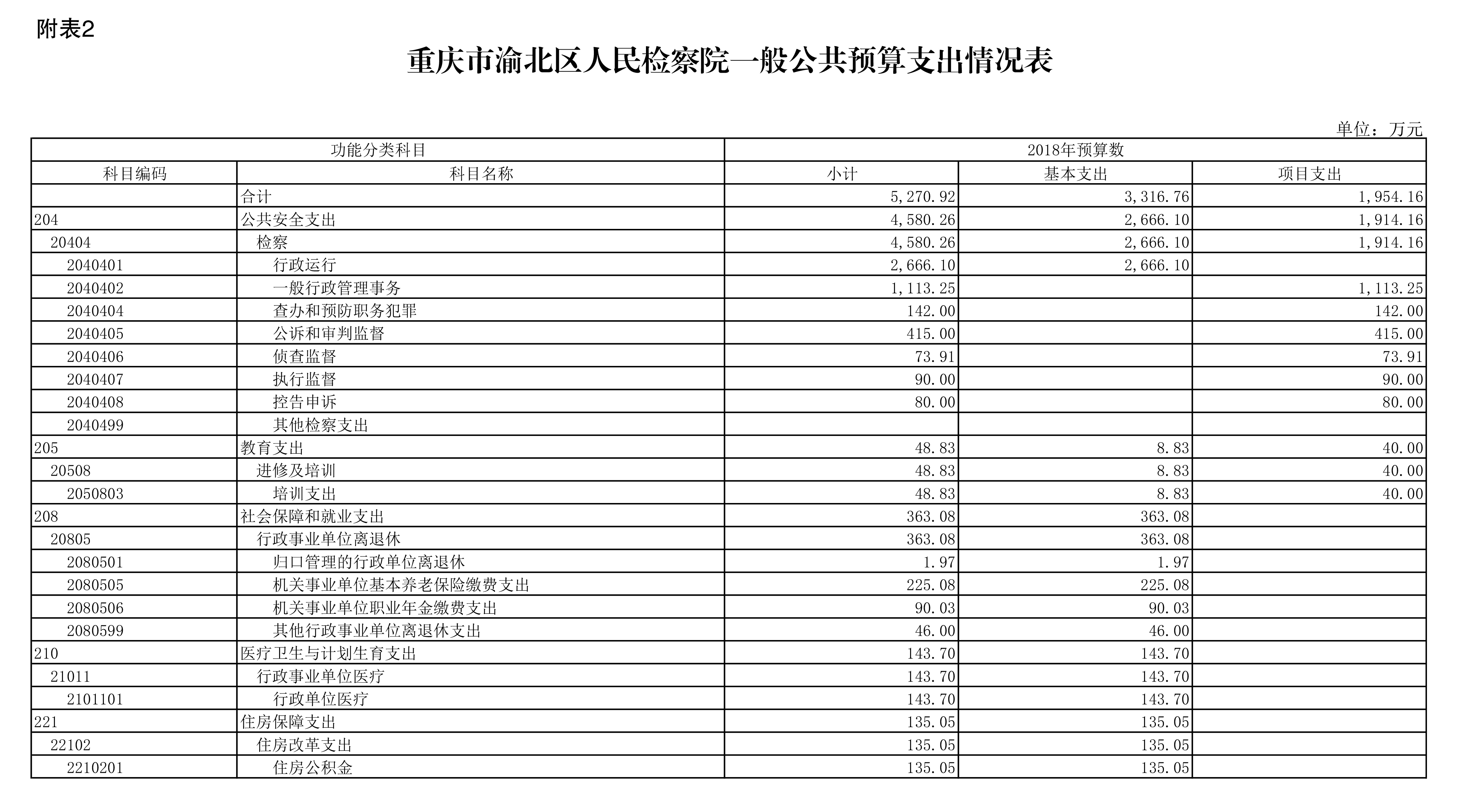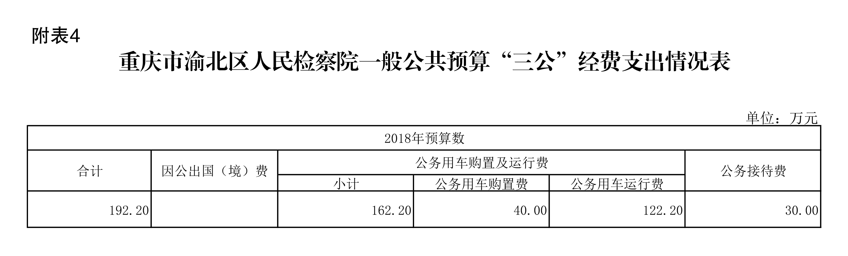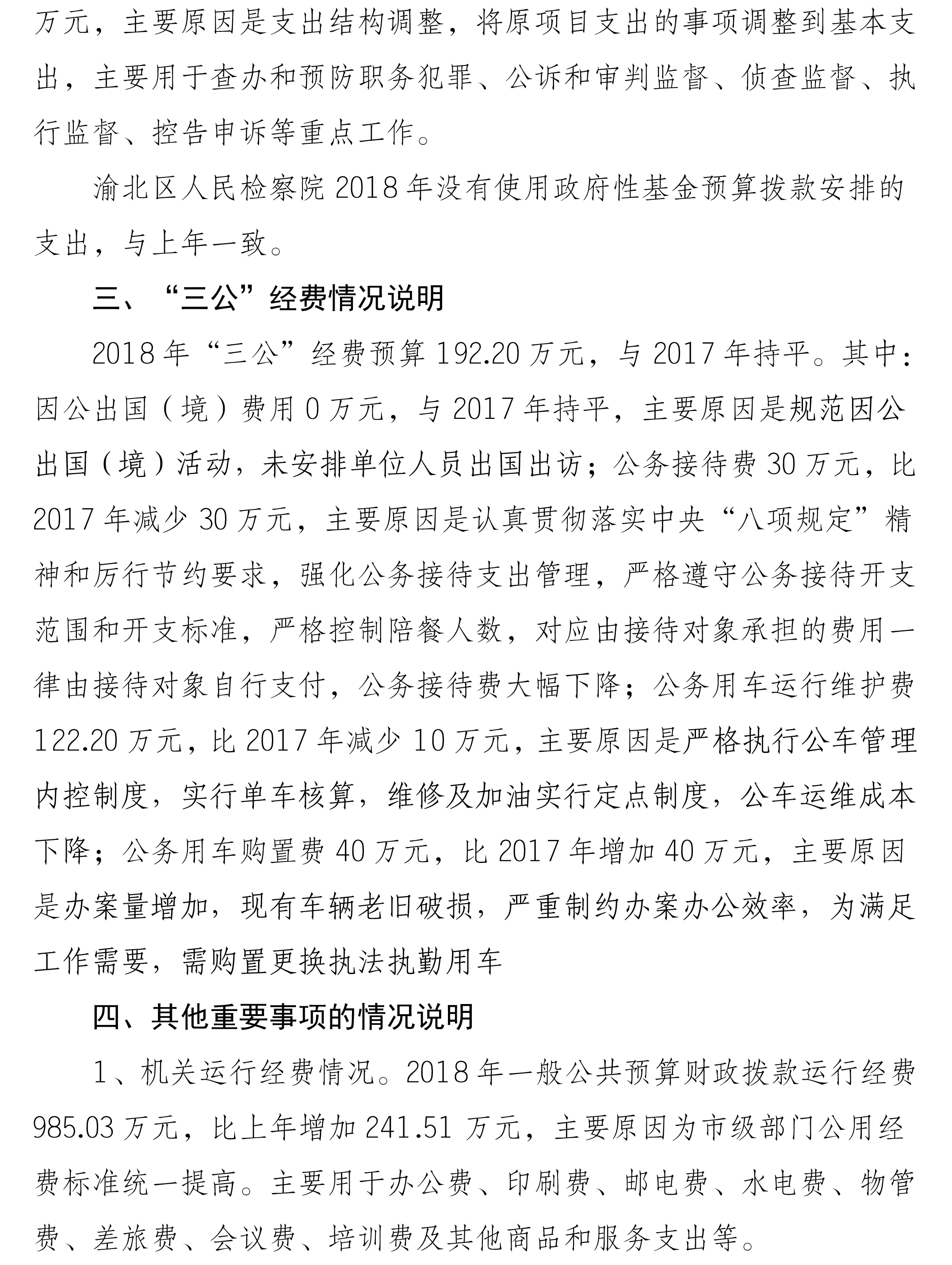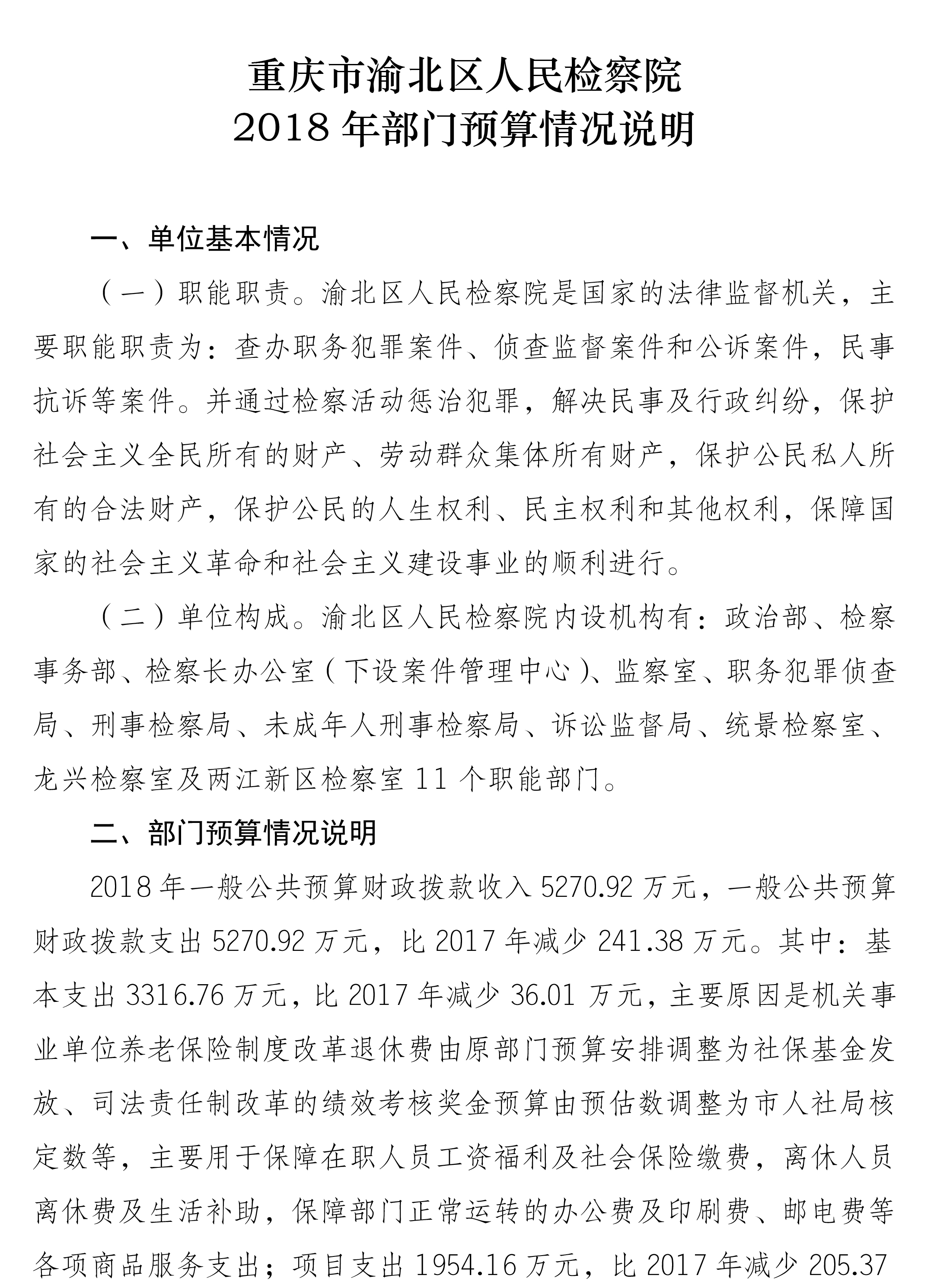 重庆市渝北区人民检察院2018年部门预算公开